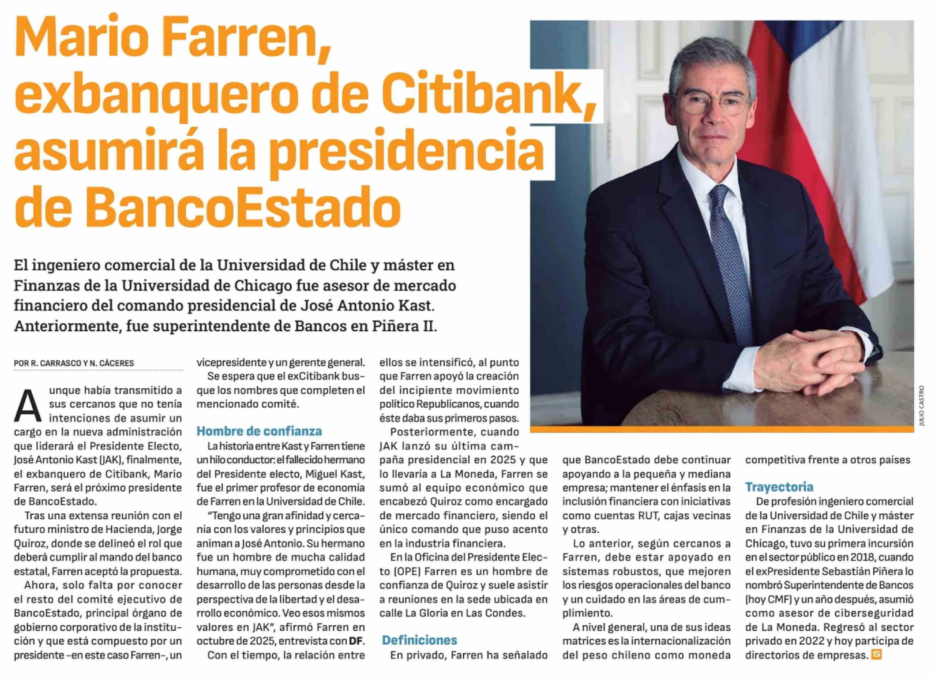 Título: Mario Farren, exbanquero de Citibank, asumirá la presidencia de BancoEstado