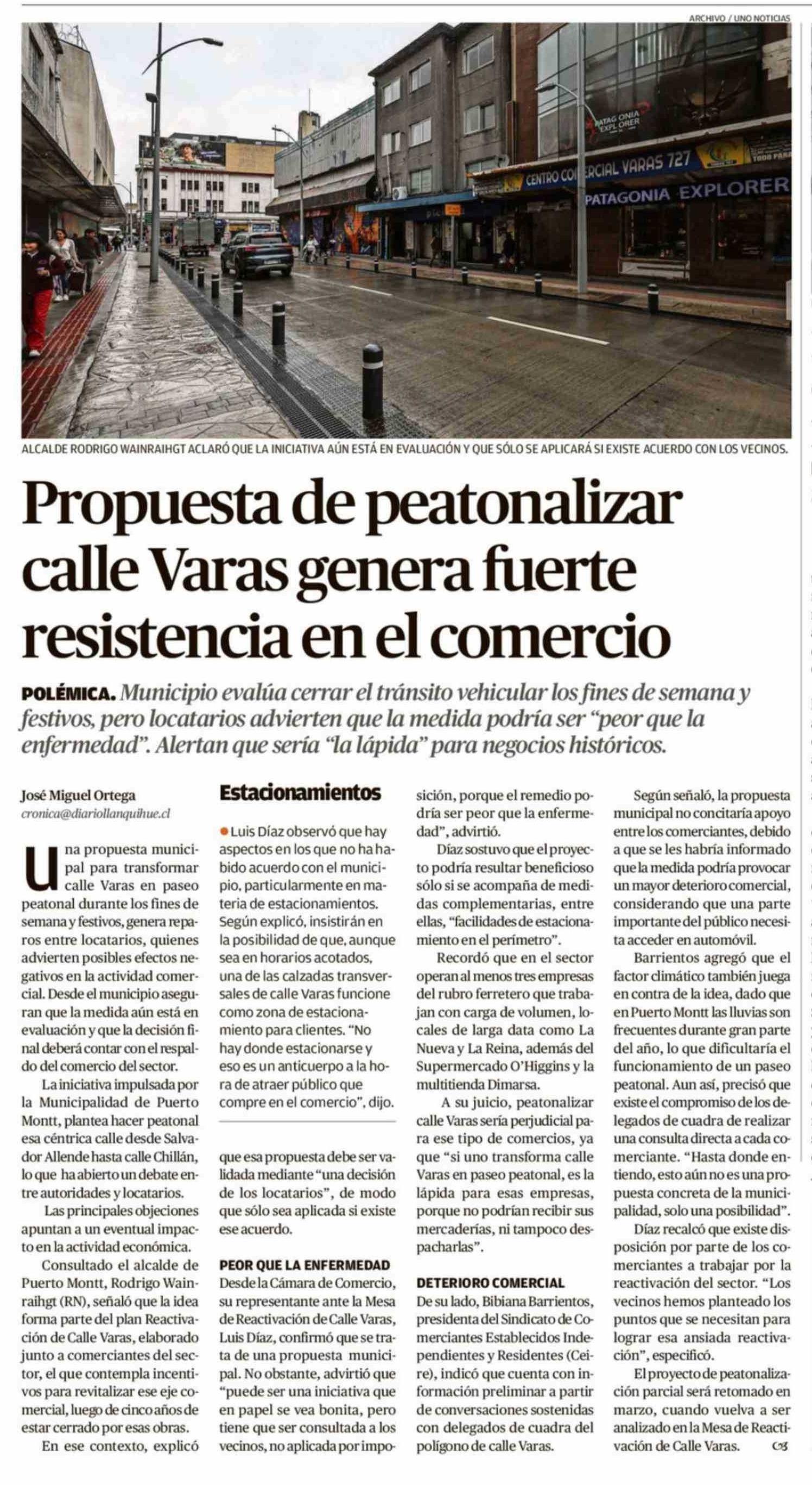 Título: Propuesta de peatonalizar calle Varas genera fuerte resistencia en el comercio