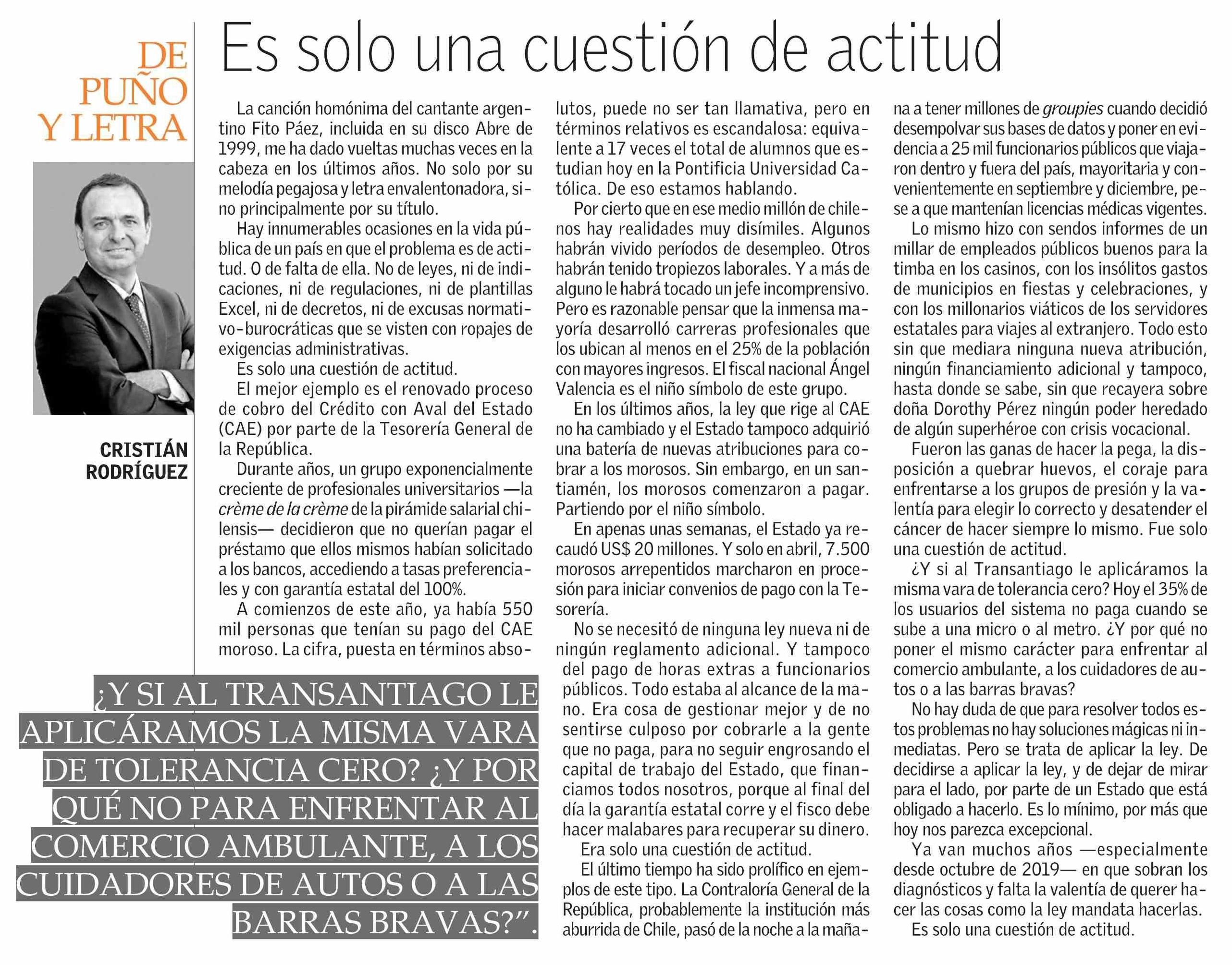 Columnas de Opinión: Es solo una cuestión de actitud 25-04-2026 El Mercurio |