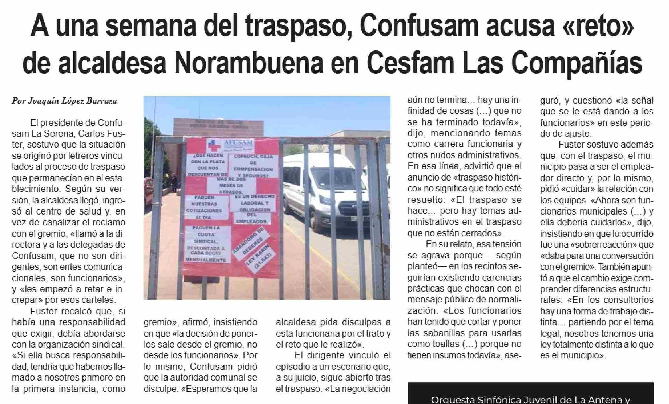 Título: A una semana del traspaso, Confusam acusa «reto» de alcaldesa Norambuena en Cesfam Las Compañías