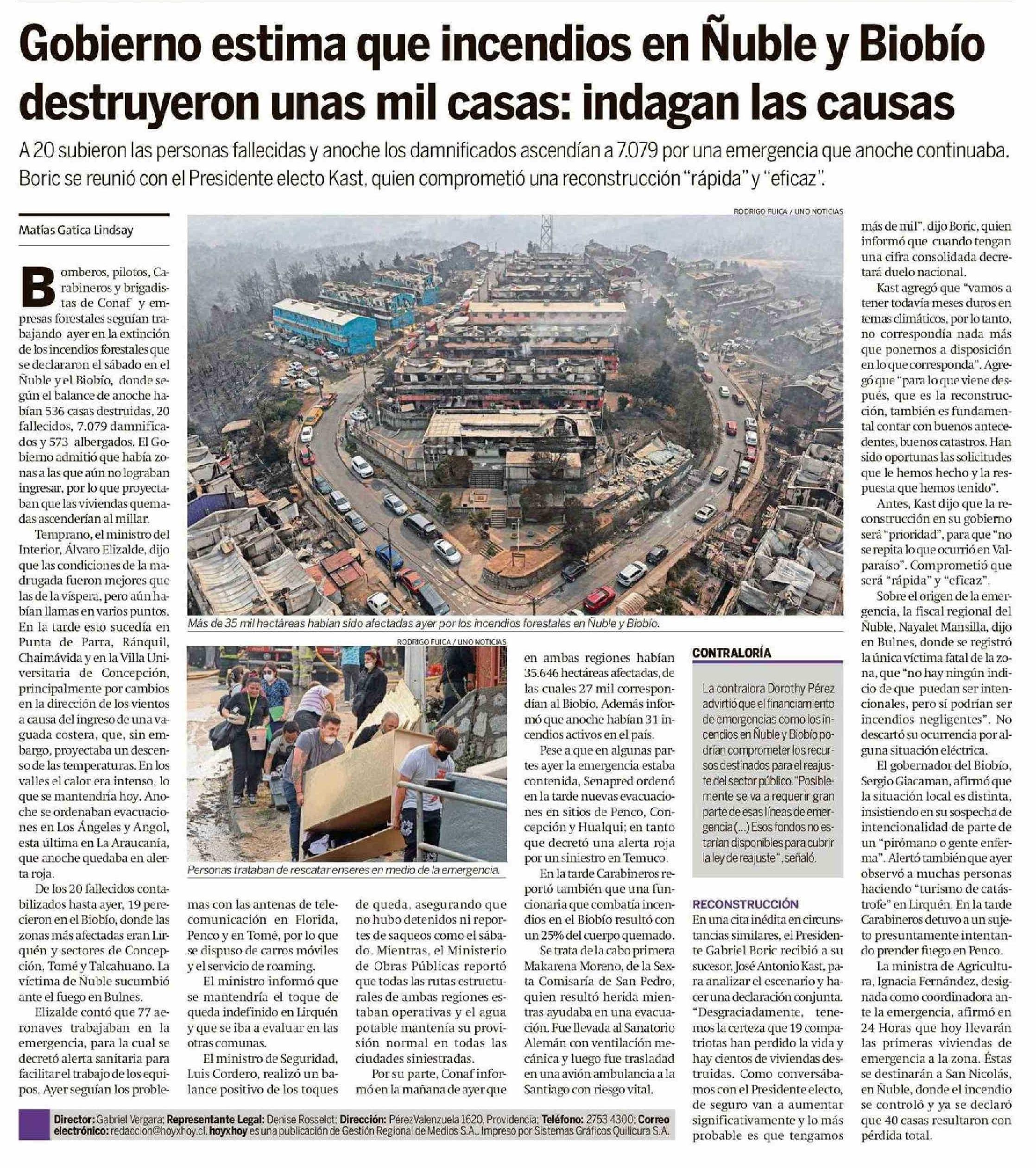 Título: Gobierno estima que incendios en Nuble y Biobio destruyeron unas mil casas: indagan las causas