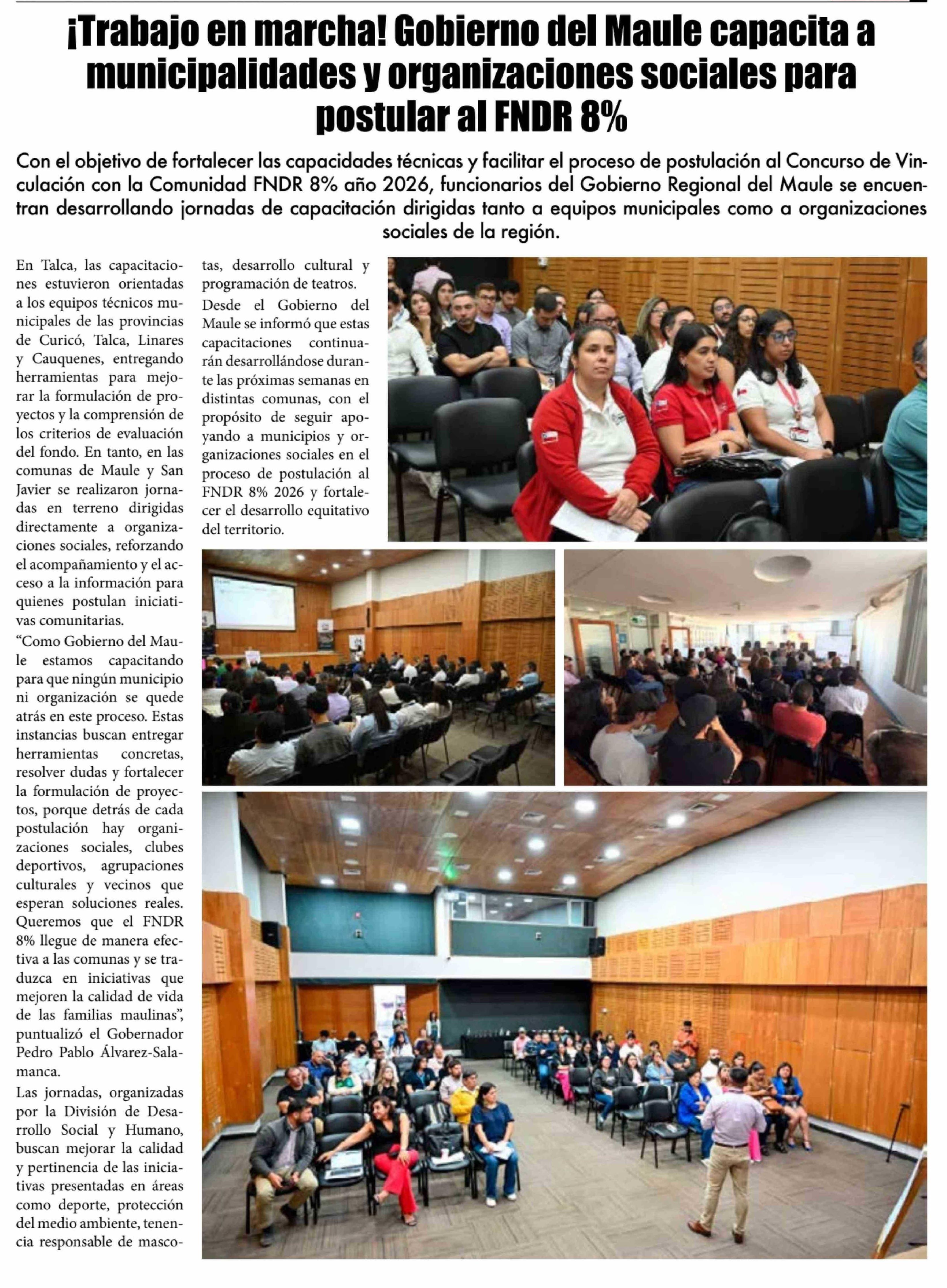 Título: ¡Trabajo en marcha! Gobierno del Maule capacita a municipalidades y organizaciones sociales para postular al FNDR 8%