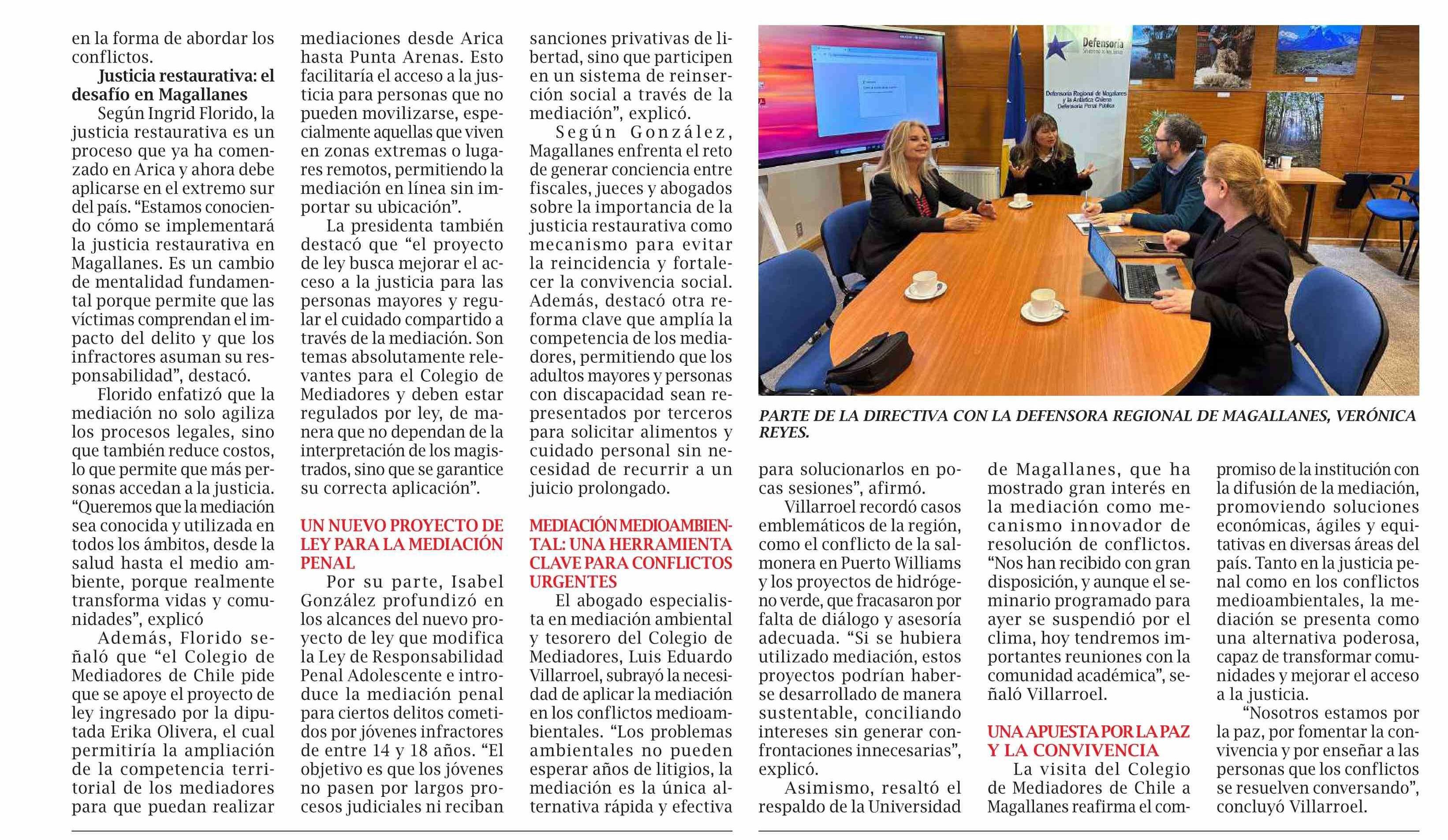 Título: Colegio de Mediadores de Chile impulsa la justicia restaurativa y la mediación en Magallanes