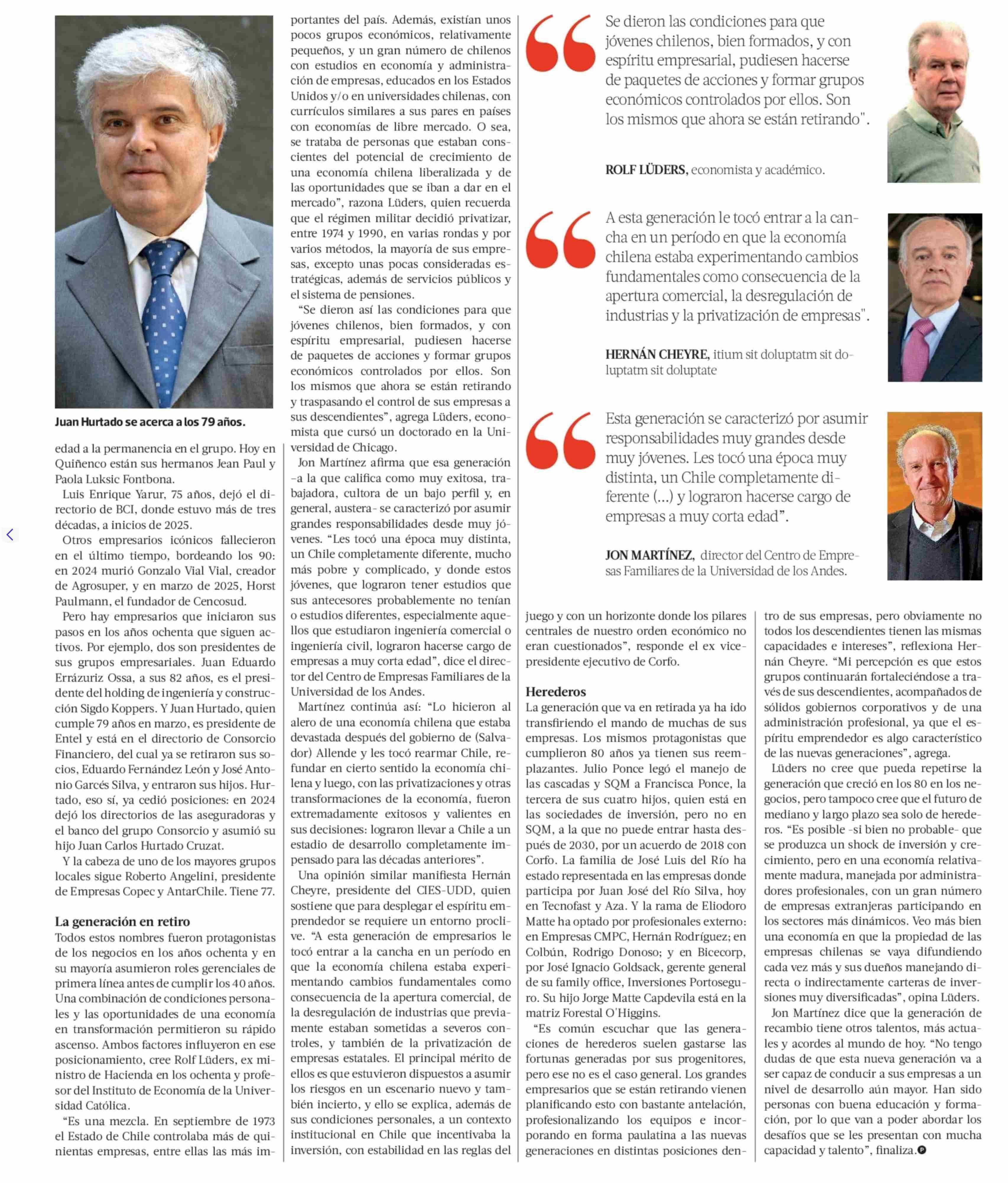 | Título: | La generación empresarial chilena que se retiró (y se está retirando) de la primera línea |