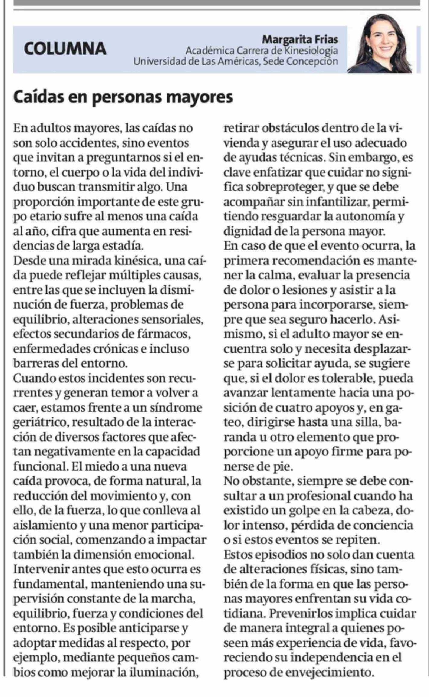 Columnas de Opinión: Caídas en personas mayores 21-03-2026 La Estrella de Concepción |
