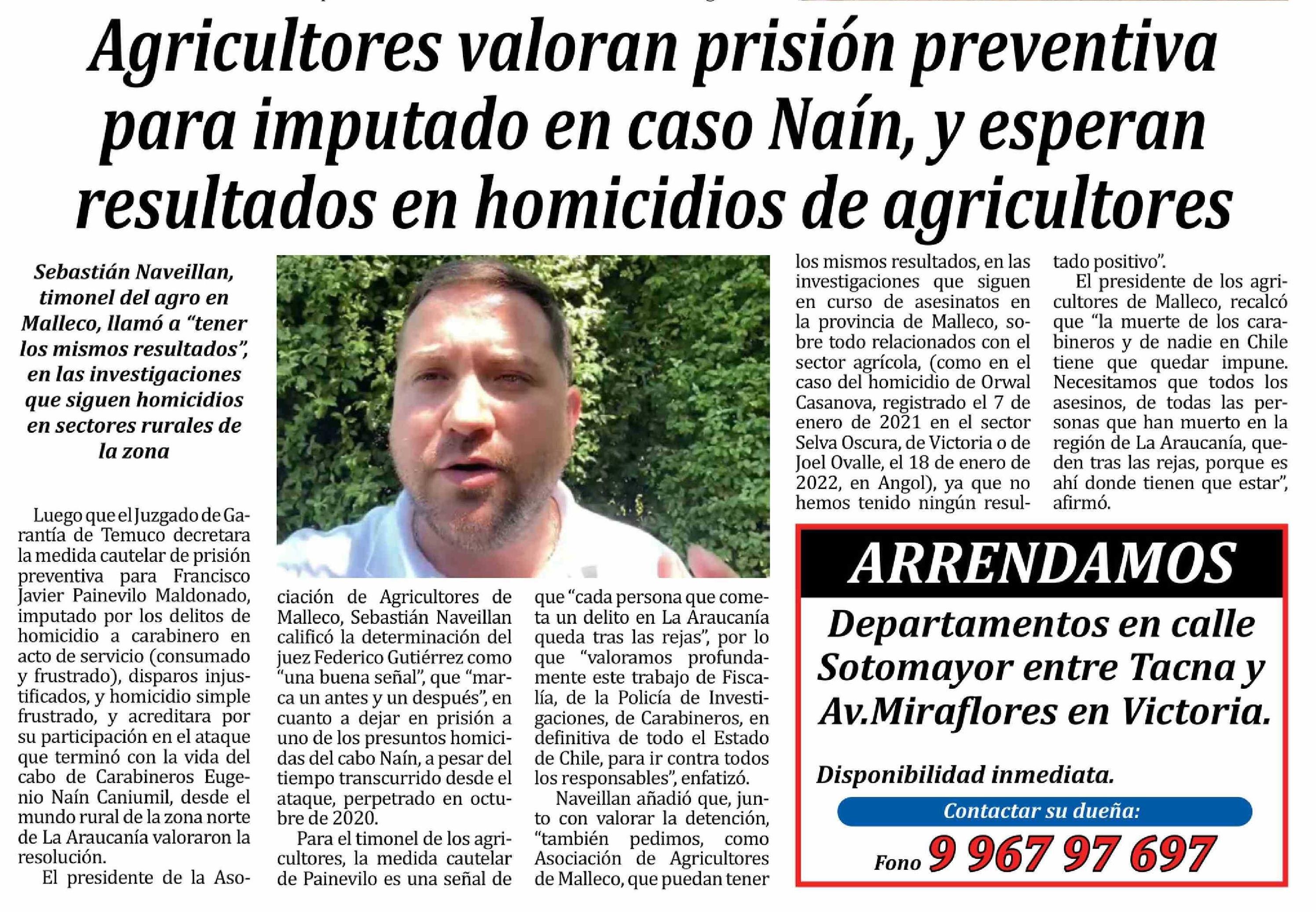 Agricultores valoran prisión preventiva para imputado en caso Naín, y esperan resultados en homicidios de agricultores 21-04-2026 Las Noticias |