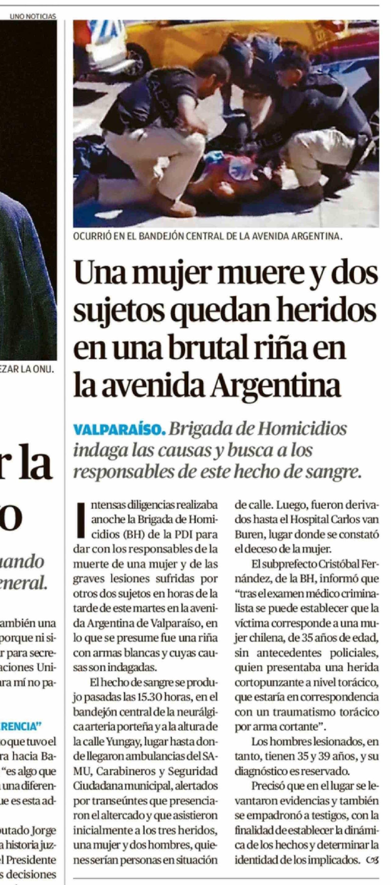 Título: Una mujer muere y dos sujetos quedan heridos en una brutal riña en la avenida Argentina