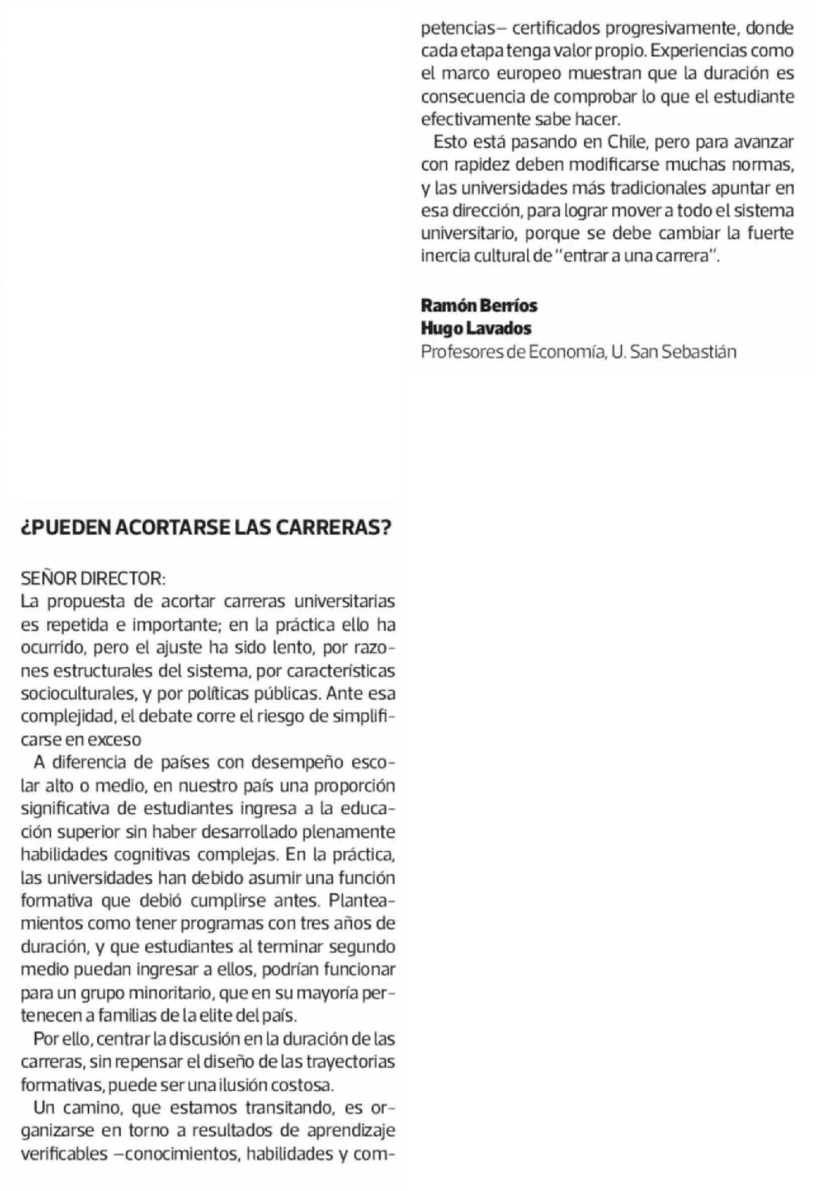 Cartas: ¿PUEDEN ACORTARSE LAS CARRERAS? 30-03-2026 La Tercera |