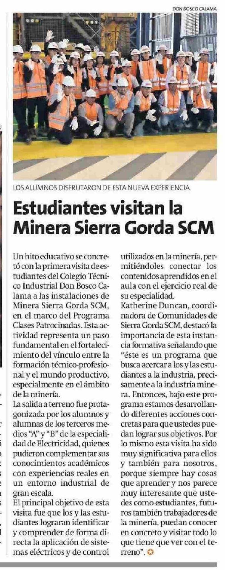 | Título: | Estudiantes visitan la Minera Sierra Gorda SCM |