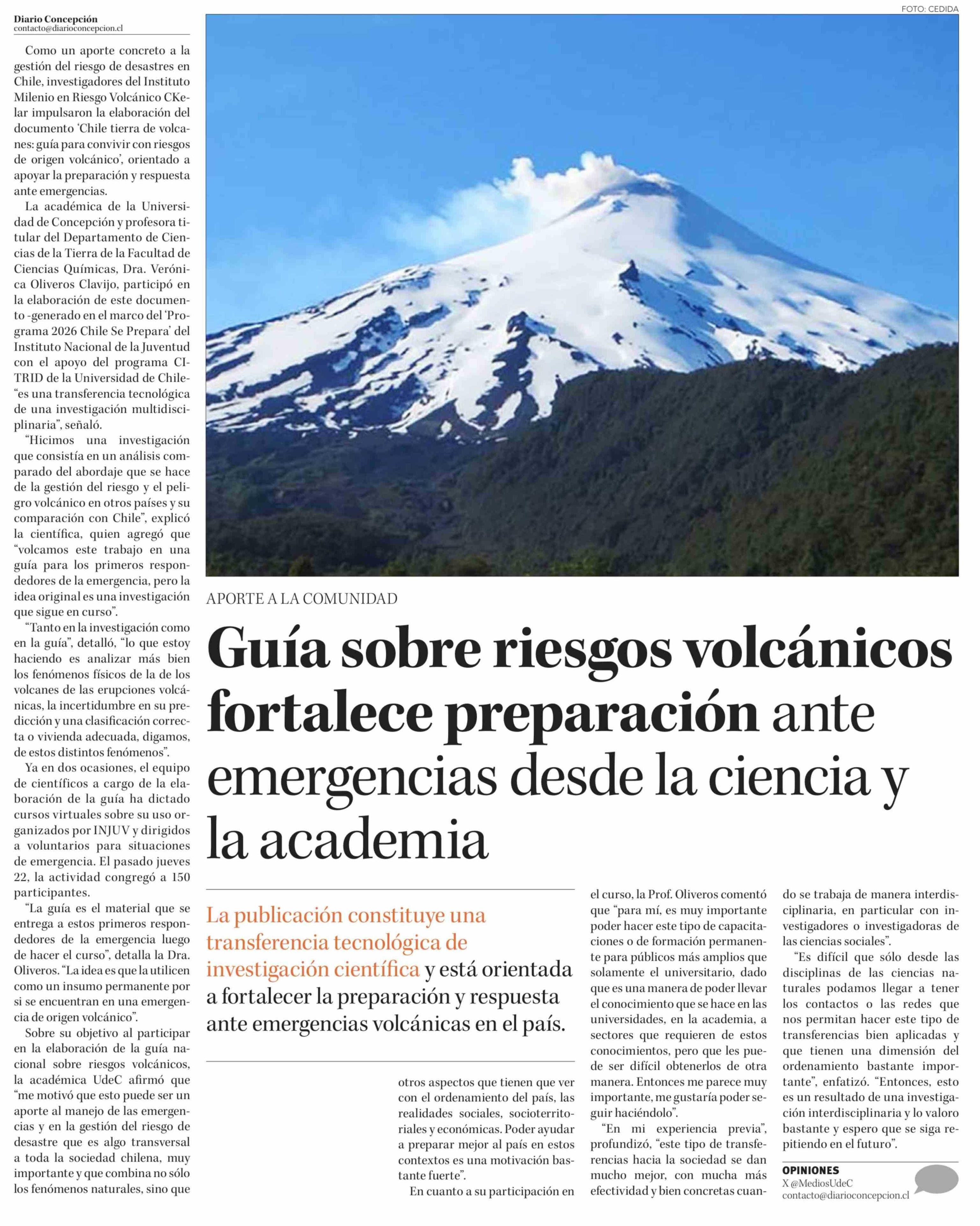 Guía sobre riesgos volcánicos fortalece preparación ante emergencias desde la ciencia y la academia 13-02-2026 Diario Concepción |