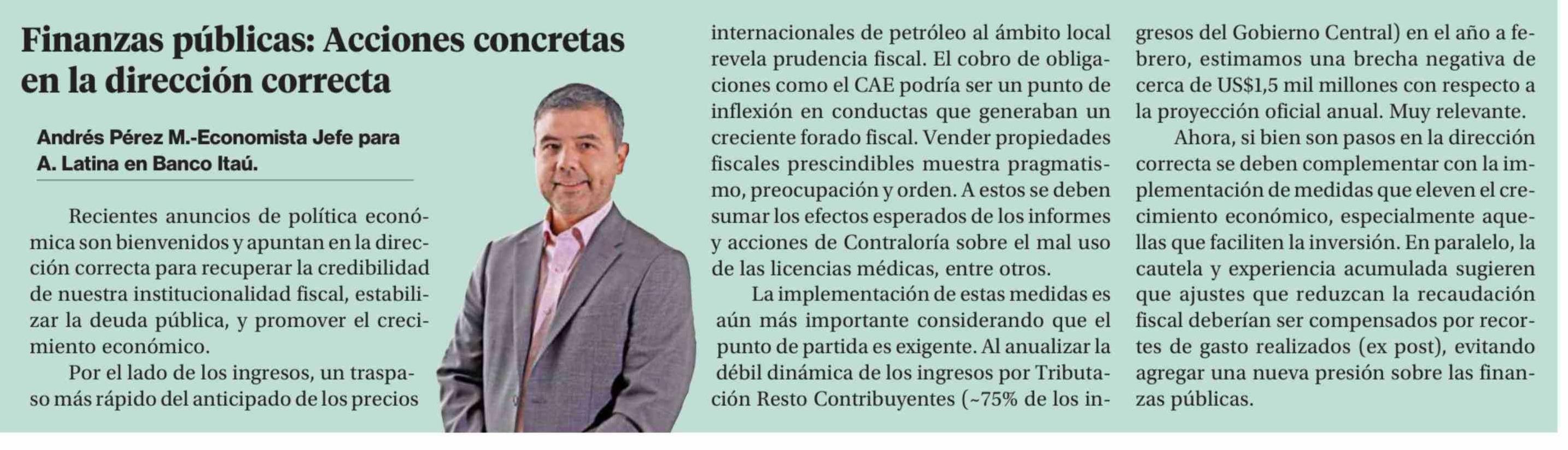 Columnas de Opinión: Finanzas públicas: Acciones concretas en la dirección correcta 14-04-2026 La Segunda |