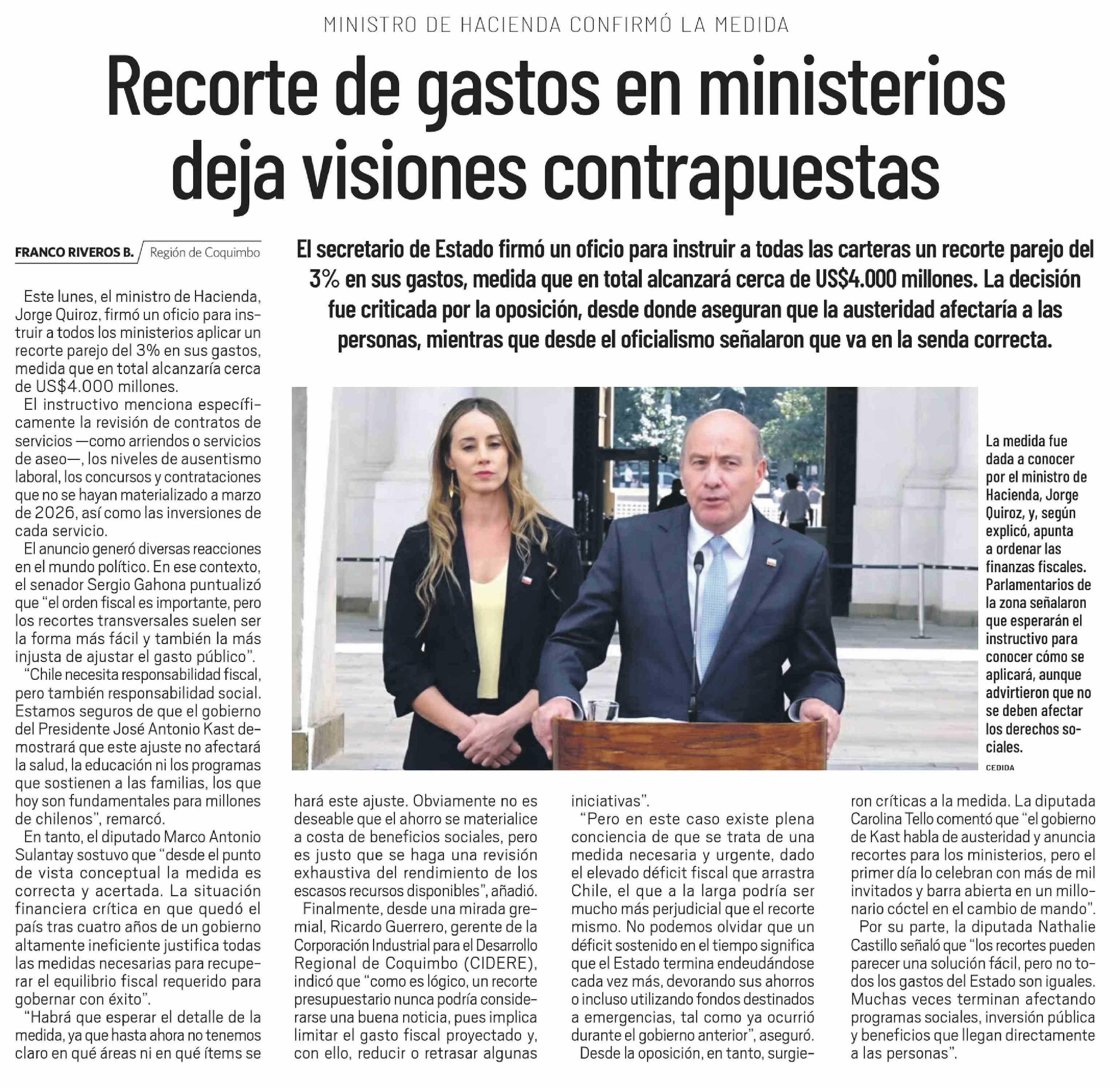 Título: Recorte de gastos en ministerios deja visiones contrapuestas