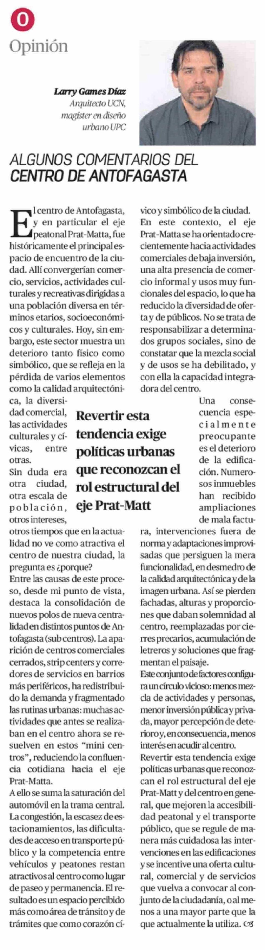 Columnas de Opinión: ALGUNOS COMENTARIOS DEL CENTRO DE ANTOFAGASTA 09-02-2026 El Mercurio de Antofagasta |
