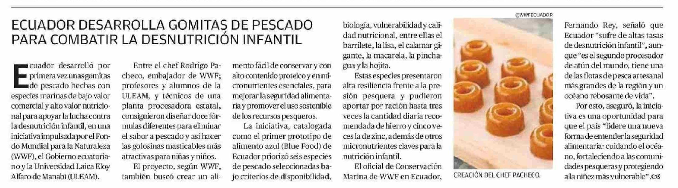 | Título: | ECUADOR DESARROLLA GOMITAS DE PESCADO PARA COMBATIR LA DESNUTRICIÓN INFANTIL |