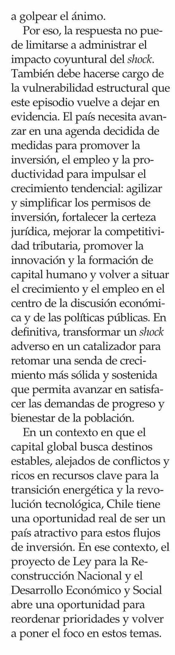 Título: Columnas de Opinión: Chile: entre el shock de la guerra y la urgencia de volver a crecer