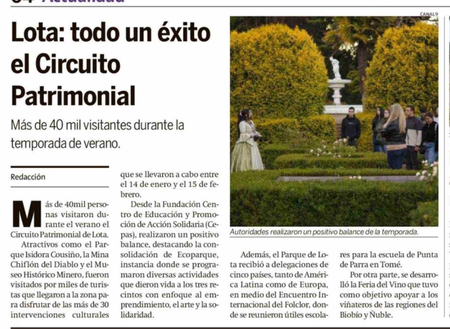| Título: | Lota: todo un éxito el Circuito Patrimonial |