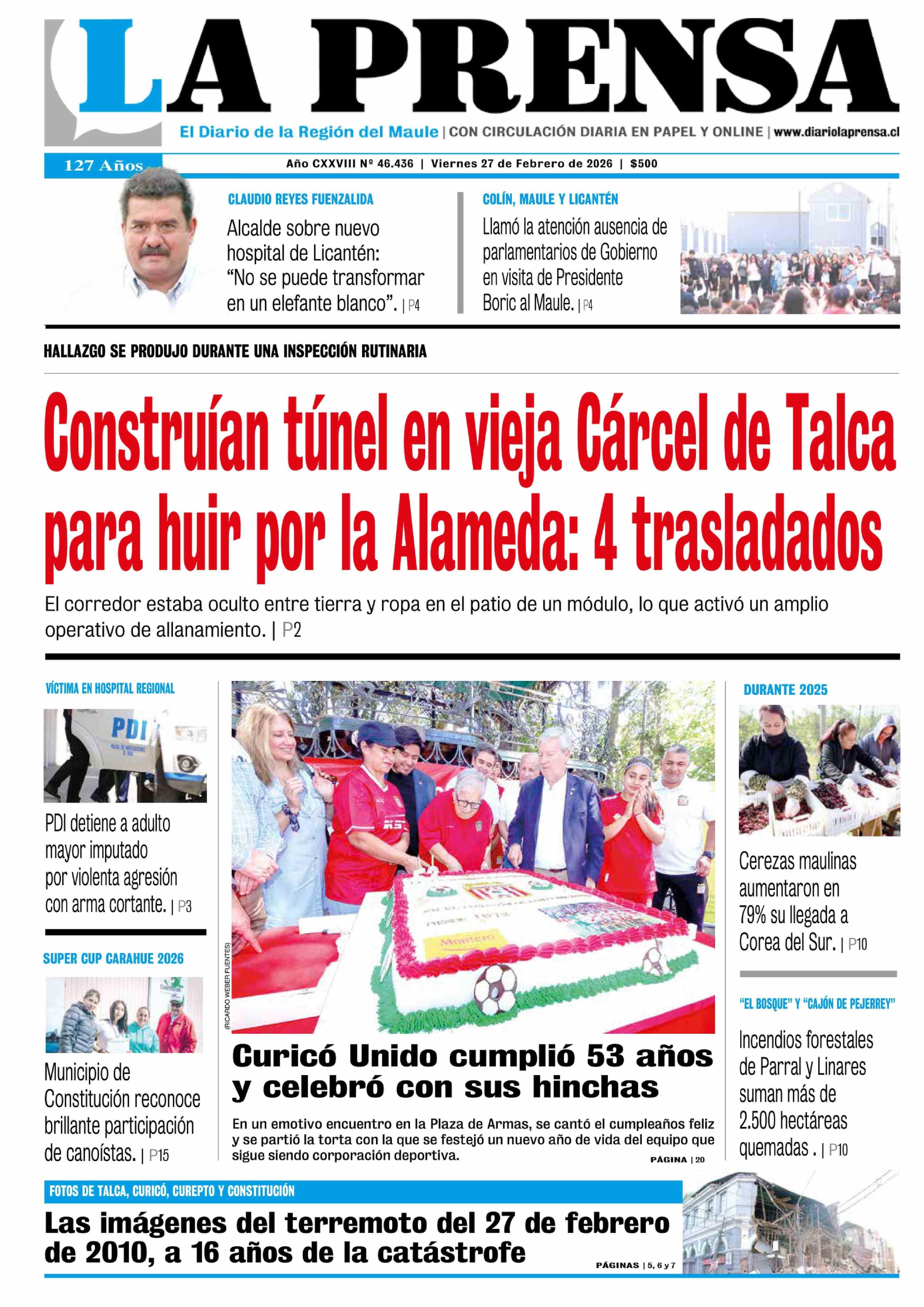 Fecha: 27-02-2026 Sector: Portada Región: Región del Maule