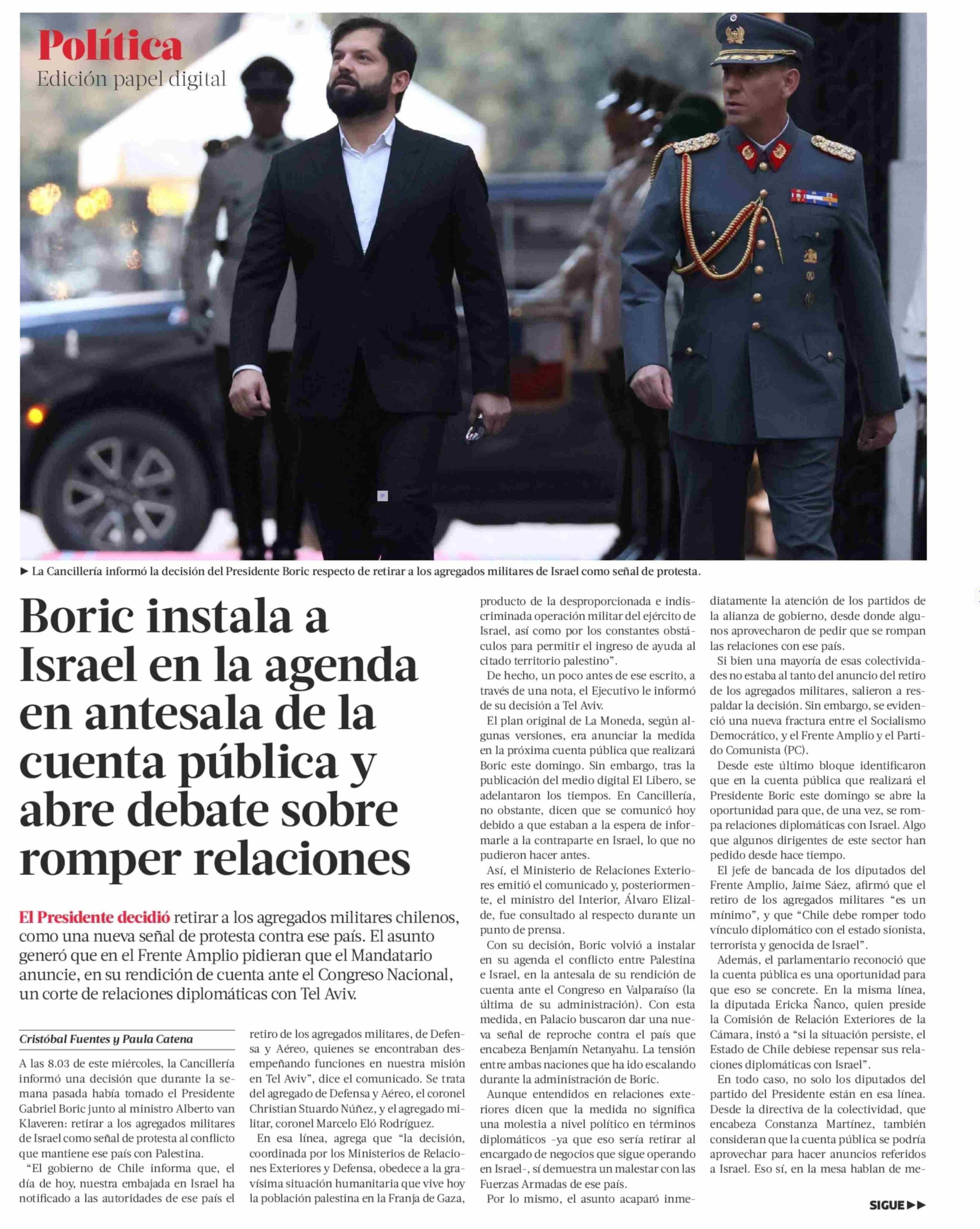| Título: | Boric instala a Israel en la agenda en antesala de la cuenta pública y abre debate sobre romper relaciones |