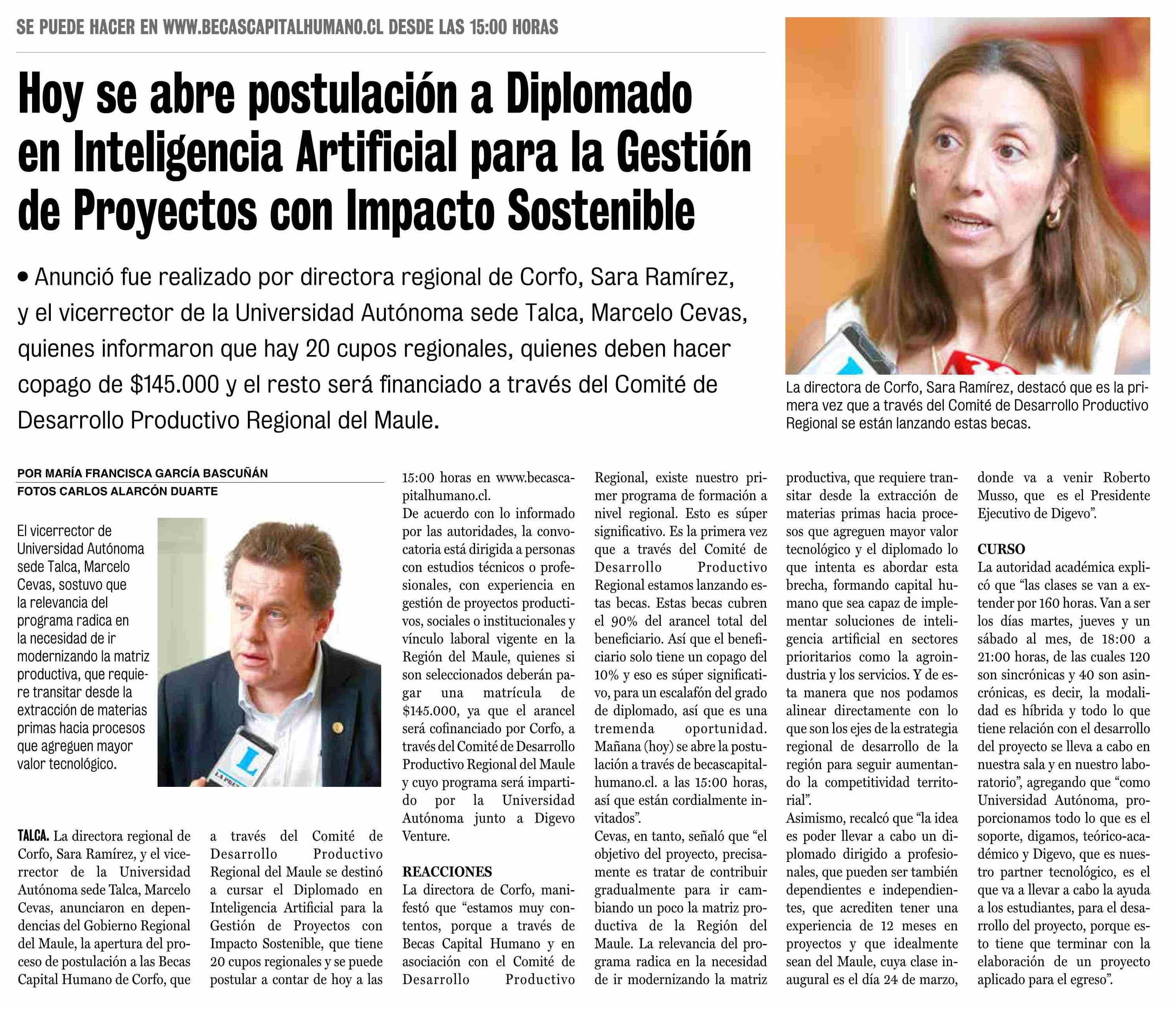 Título: Hoy se abre postulación a Diplomado en Inteligencia Artificial para la Gestión de Proyectos con Impacto Sostenible