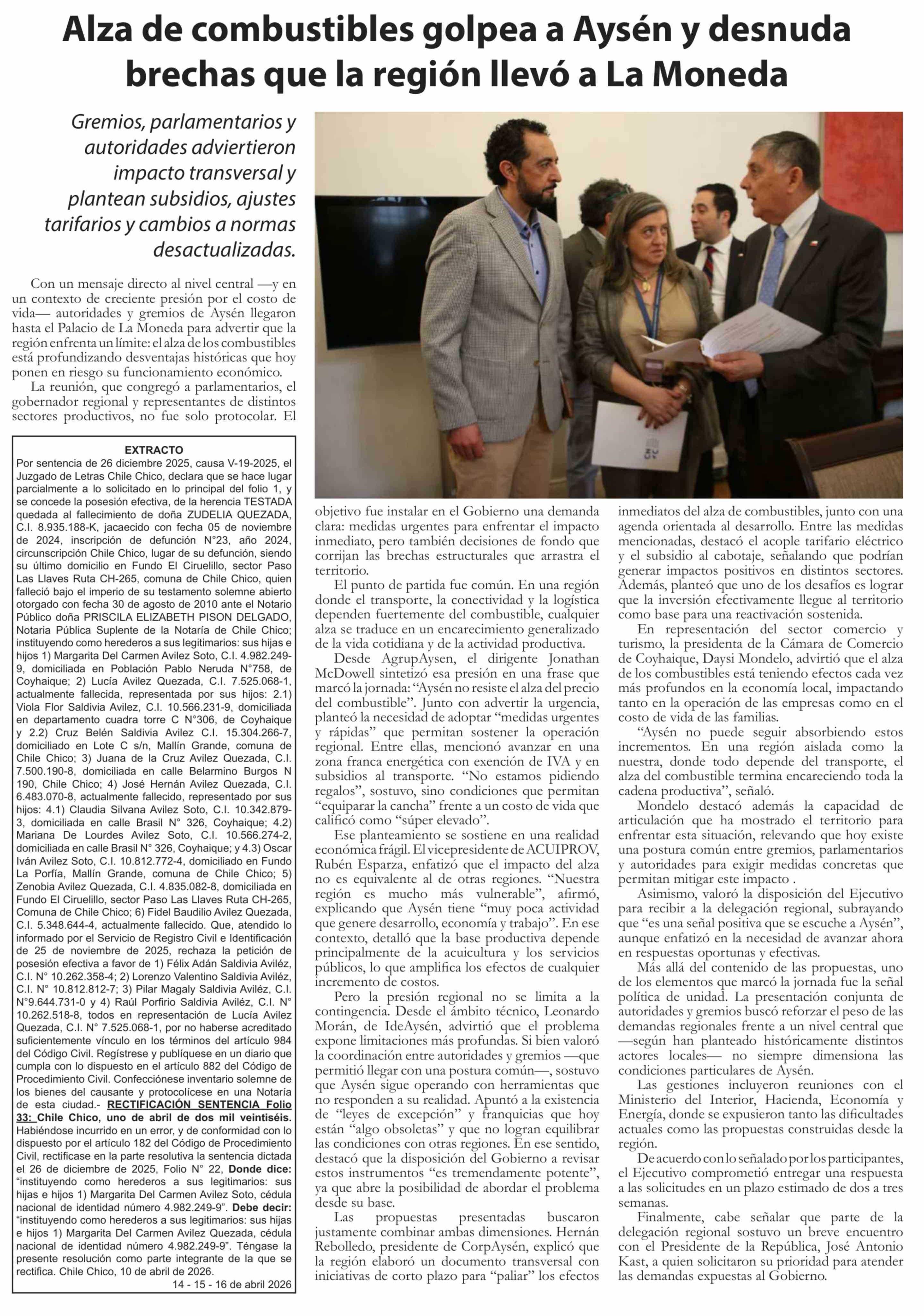 | Fecha: | 16-04-2026 | Sector: | Noticia general | Región: | Región Aysén del General Carlos Ibáñez del Campo |