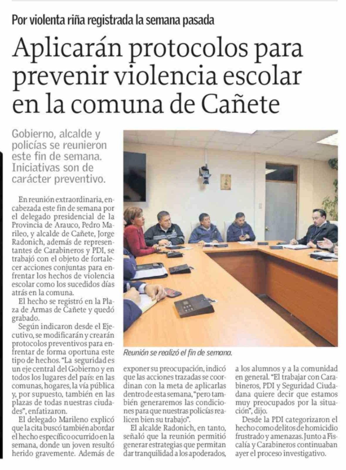Título: Aplicarán protocolos para prevenir violencia escolar en la comuna de Cañete