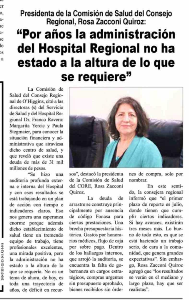 "Por años la administración del Hospital Regional no ha estado a la altura de lo que se requiere" 09-04-2026 Diario VI Región |