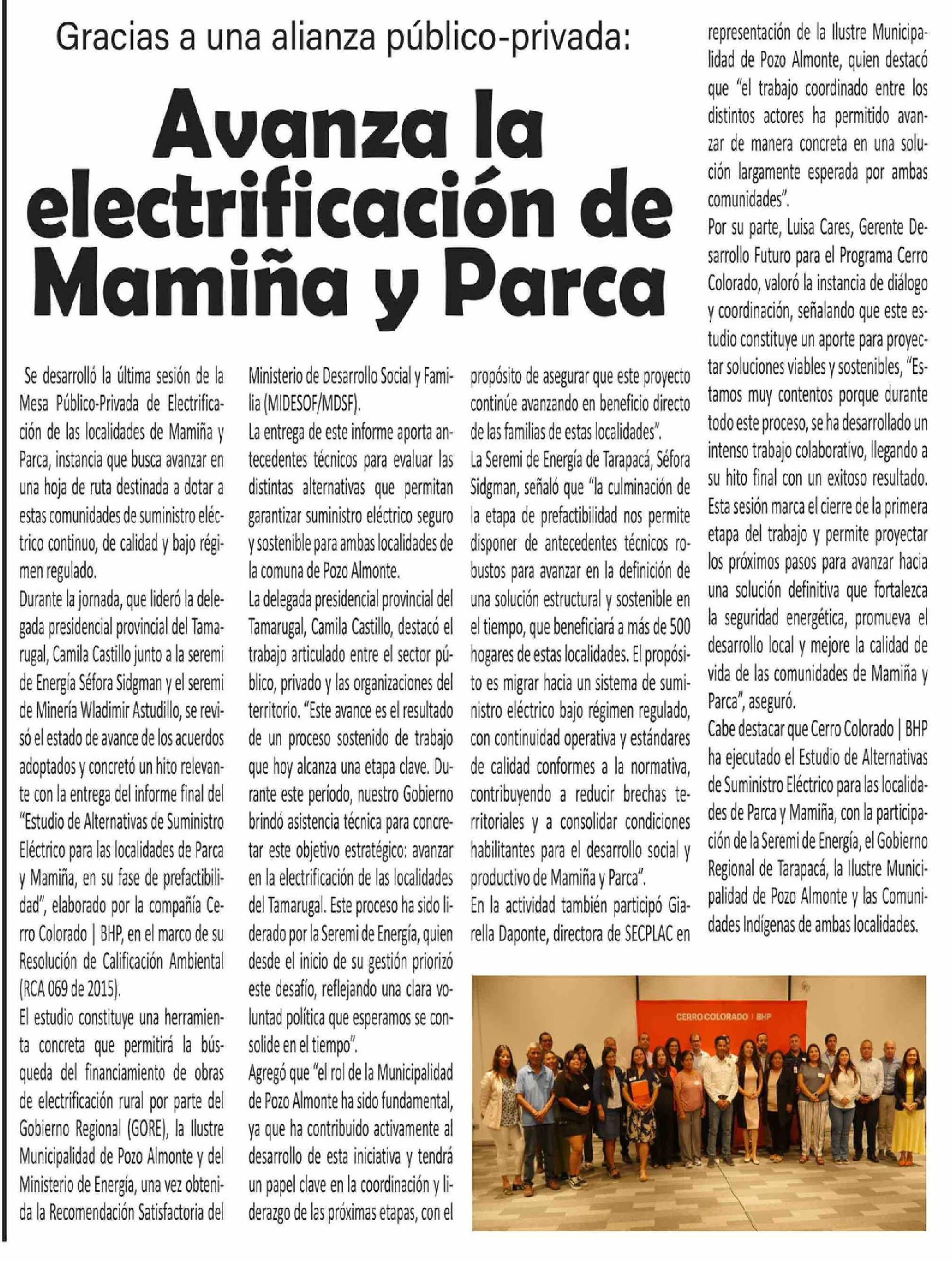 | Título: | Avanza la electrificación de Mamiña y Parca |