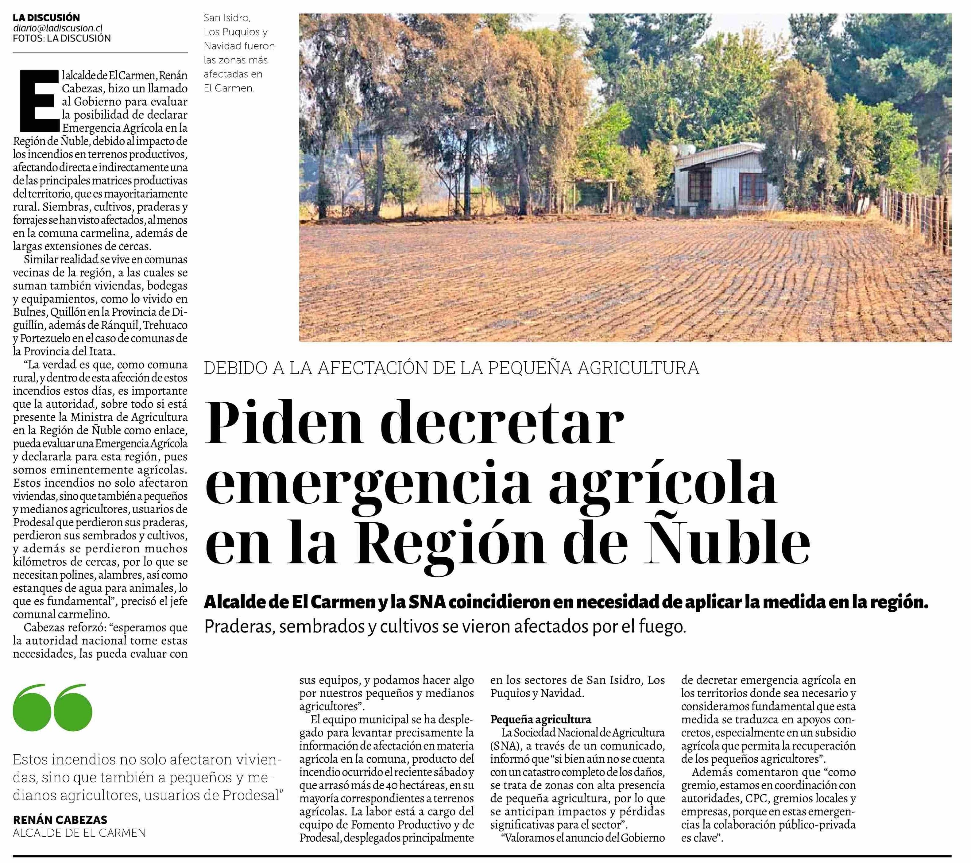 Piden decretar emergencia agrícola en la Región de Nuble 21-01-2026 La Discusión |