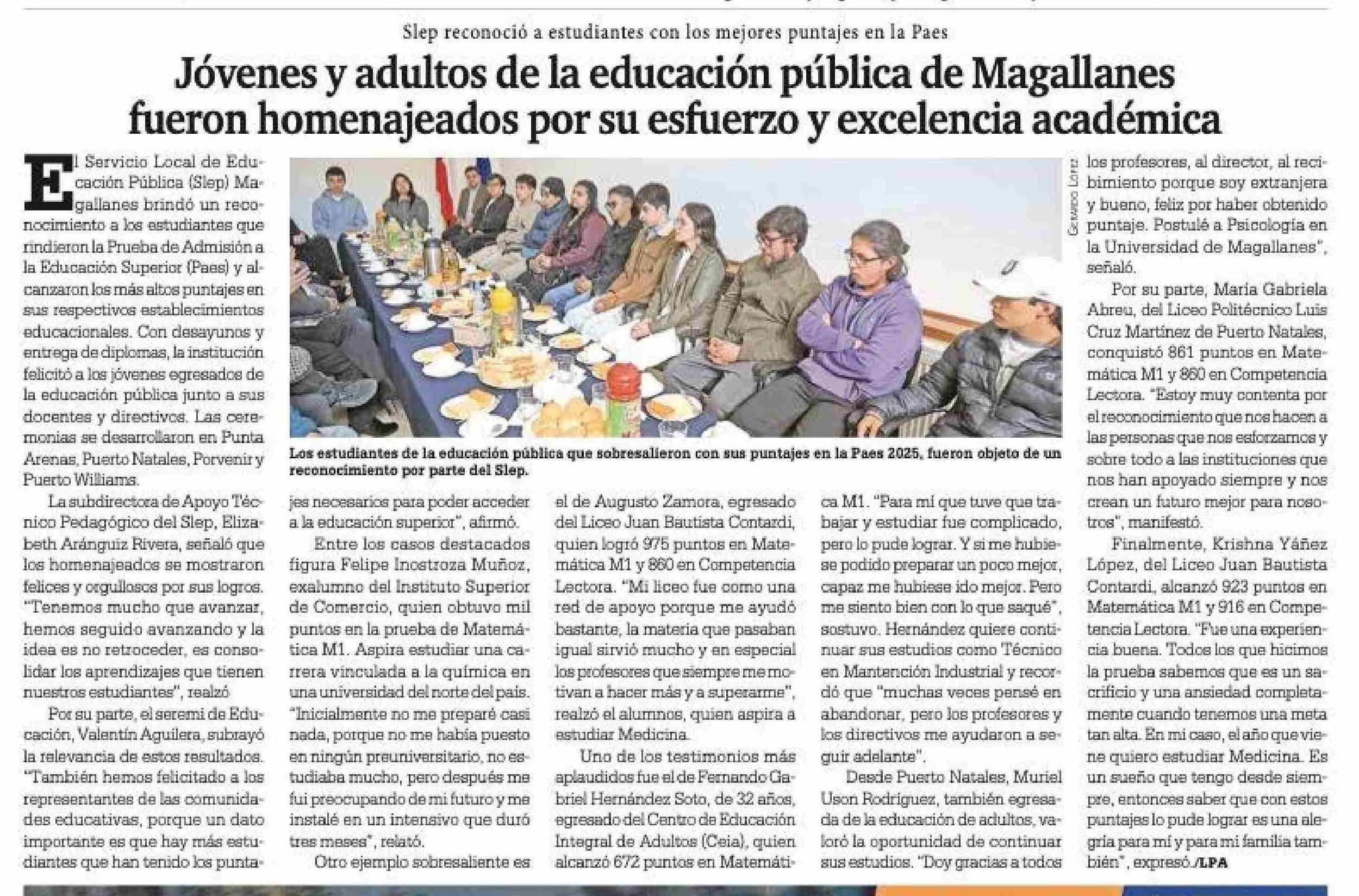 Título: Jóvenes y adultos de la educación pública de Magallanes fueron homenajeados por su esfuerzo y excelencia académica
