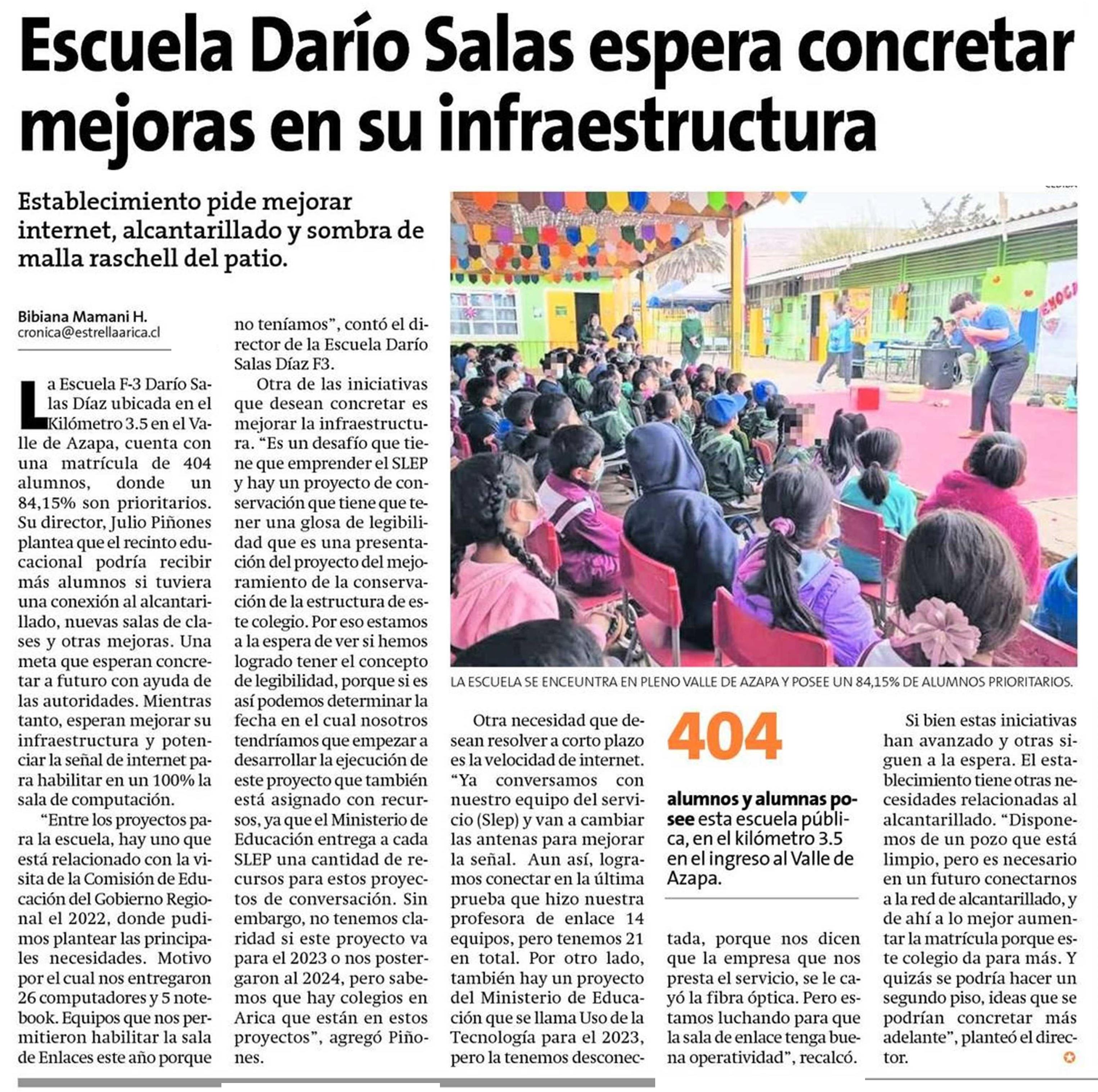Escuela Darío Salas espera concretar mejoras en su infraestructura 08-04-2023 La Estrella de Arica |