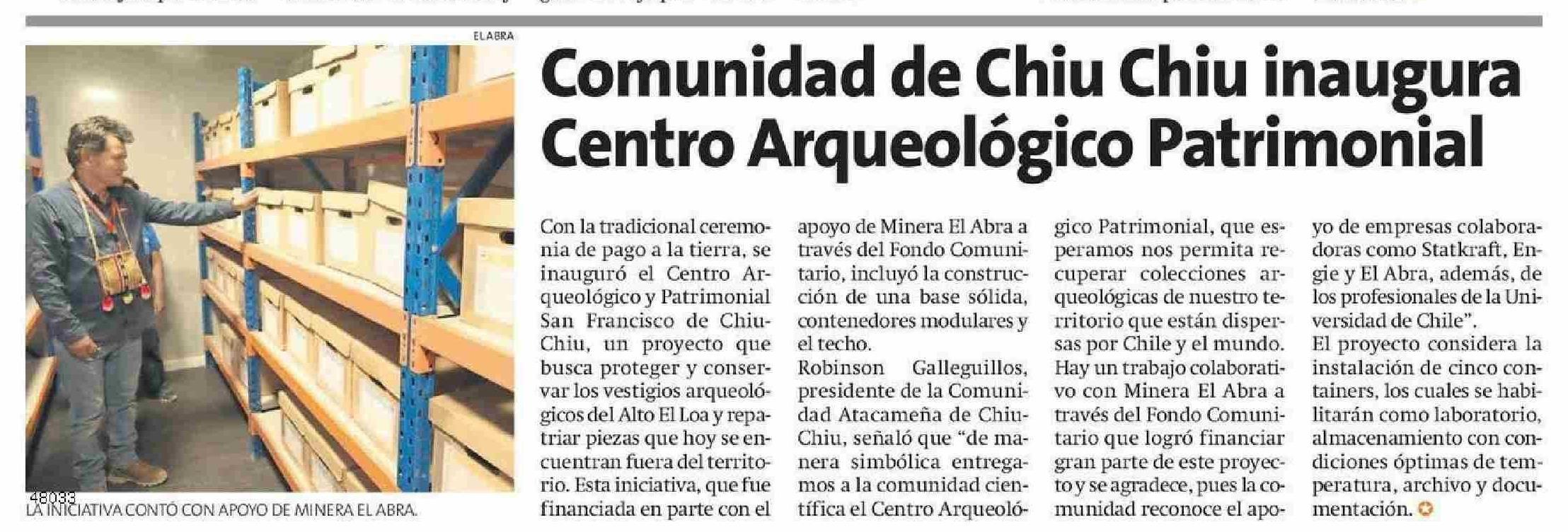 | Título: | Comunidad de Chiu Chiu inaugura Centro Arqueológico Patrimonial |