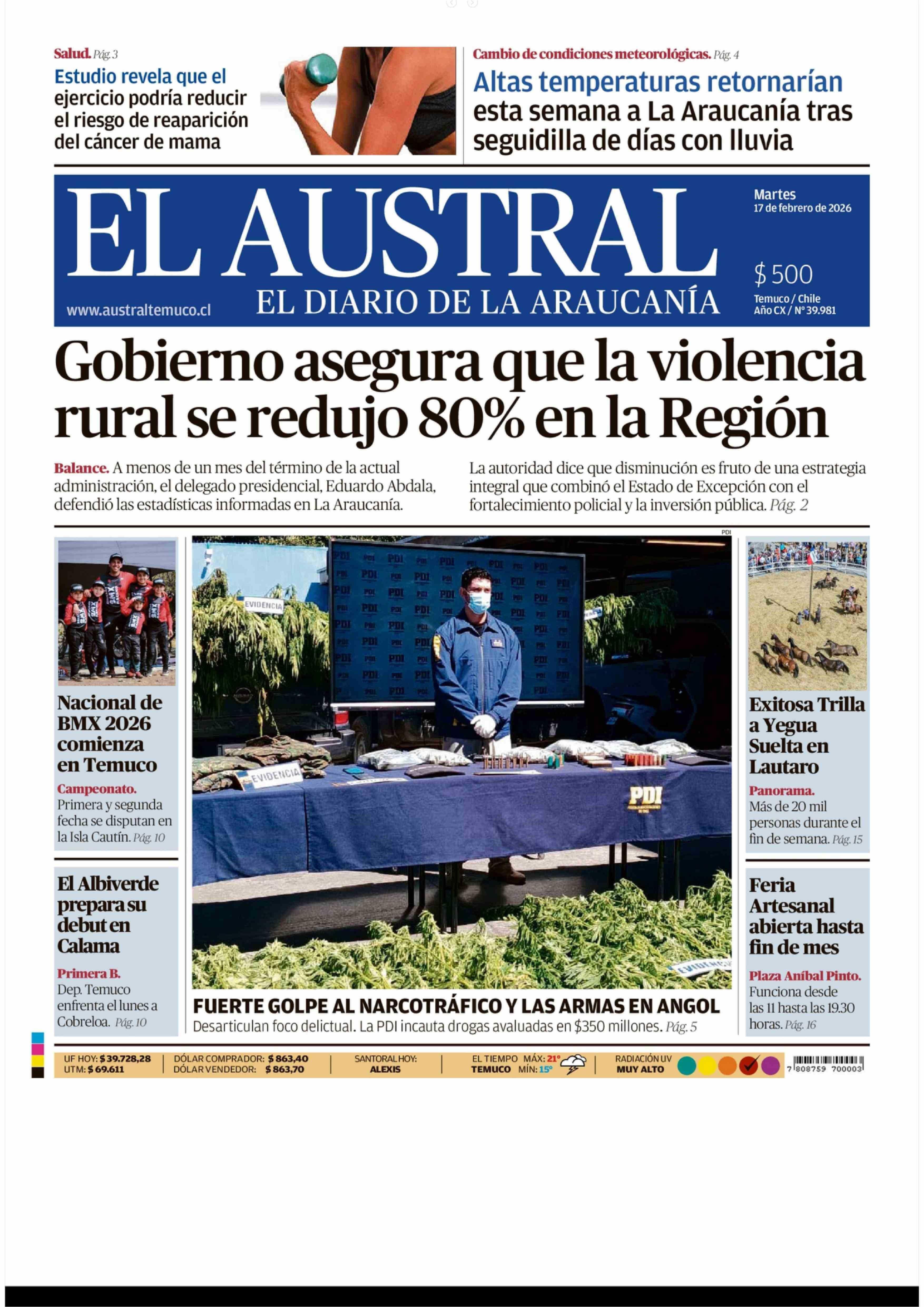 Fecha: 17-02-2026 Sector: Portada Región: Región de la Araucanía