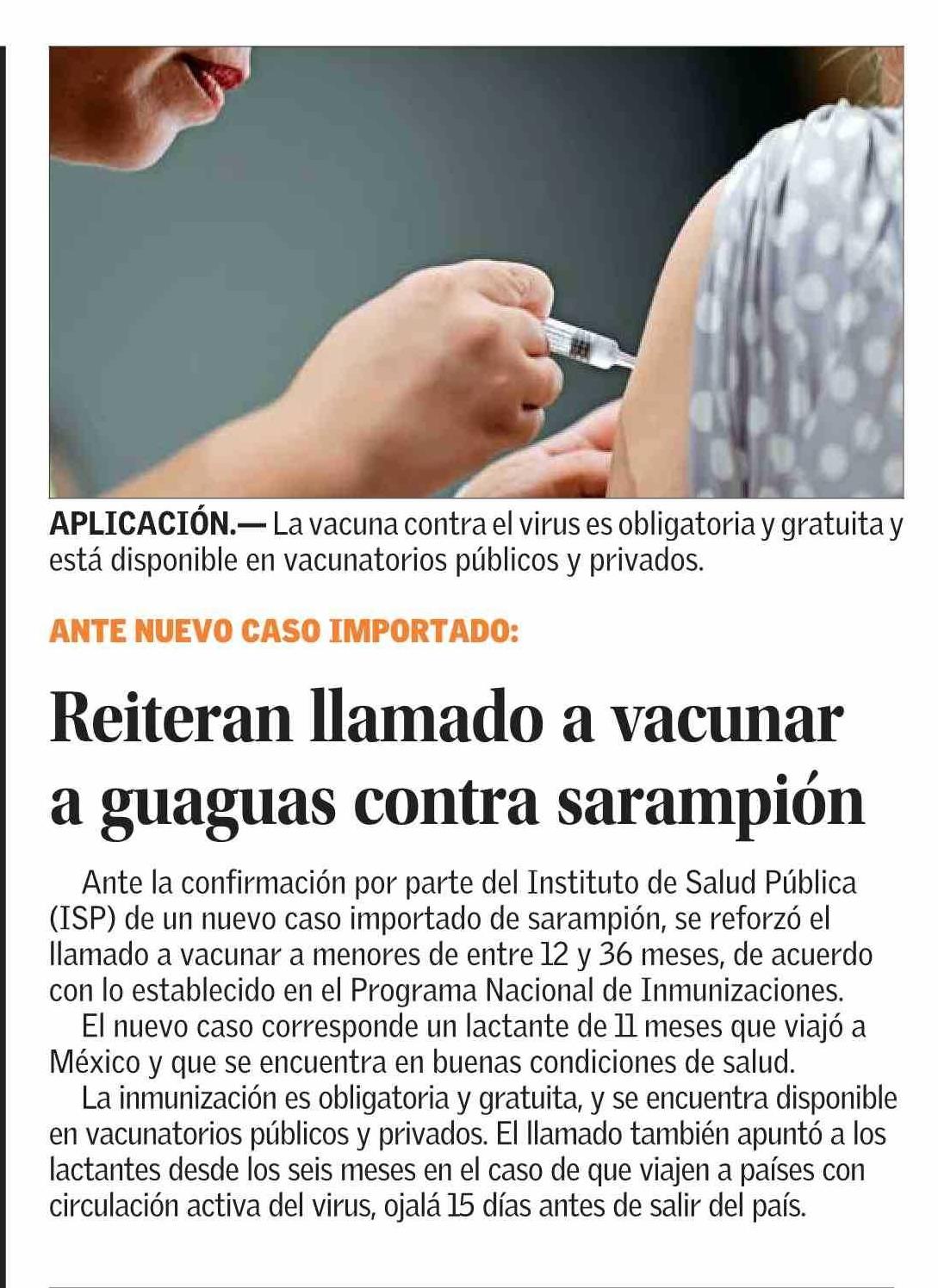 | Título: | Reiteran llamado a vacunar a guaguas contra sarampión |