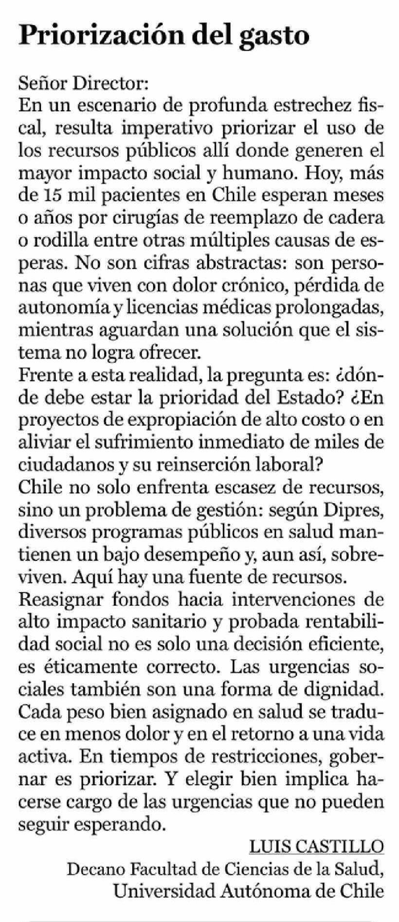 Título: Cartas: Priorización del gasto