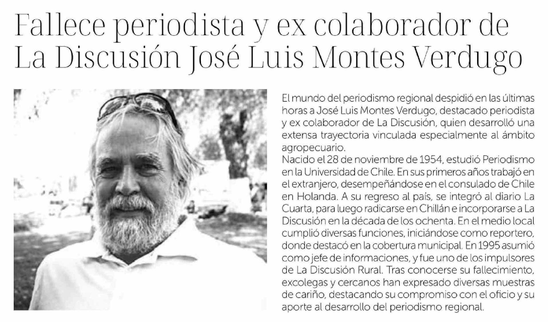Título: Fallece periodista y ex colaborador de La Discusión José Luis Montes Verdugo