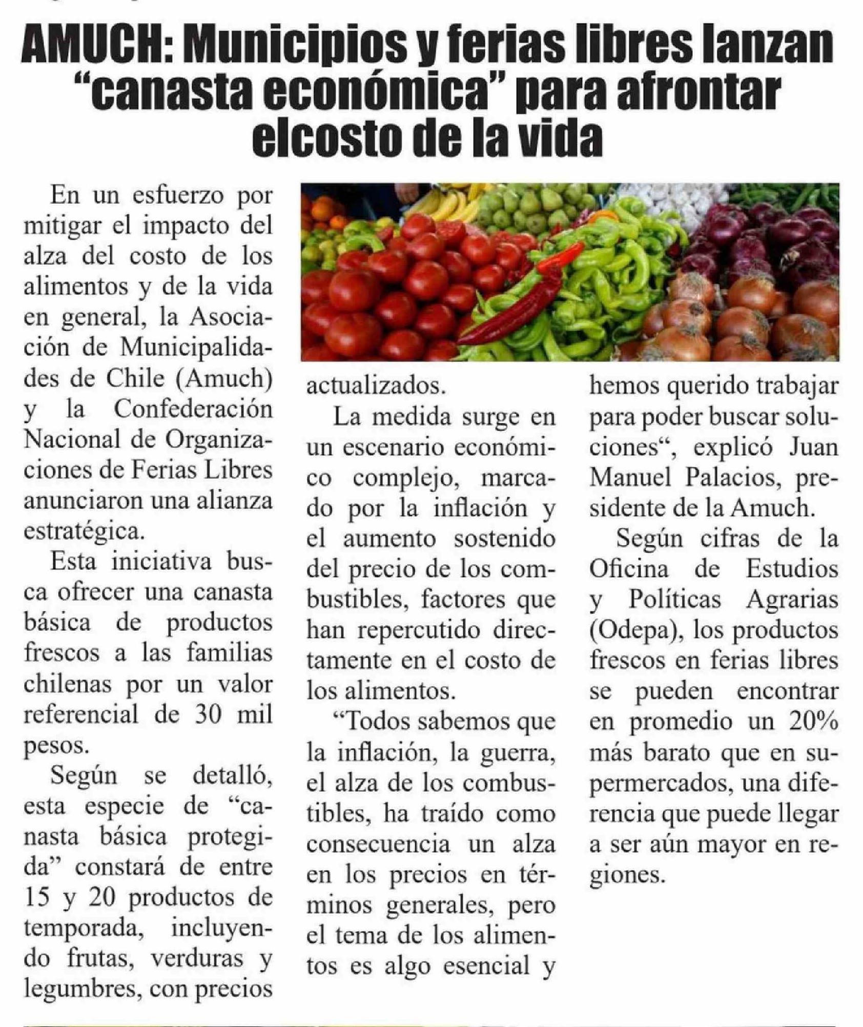 | Título: | AMUCH: Municipios y ferias libres lanzan "canasta económica" para afrontar elcosto de la vida |