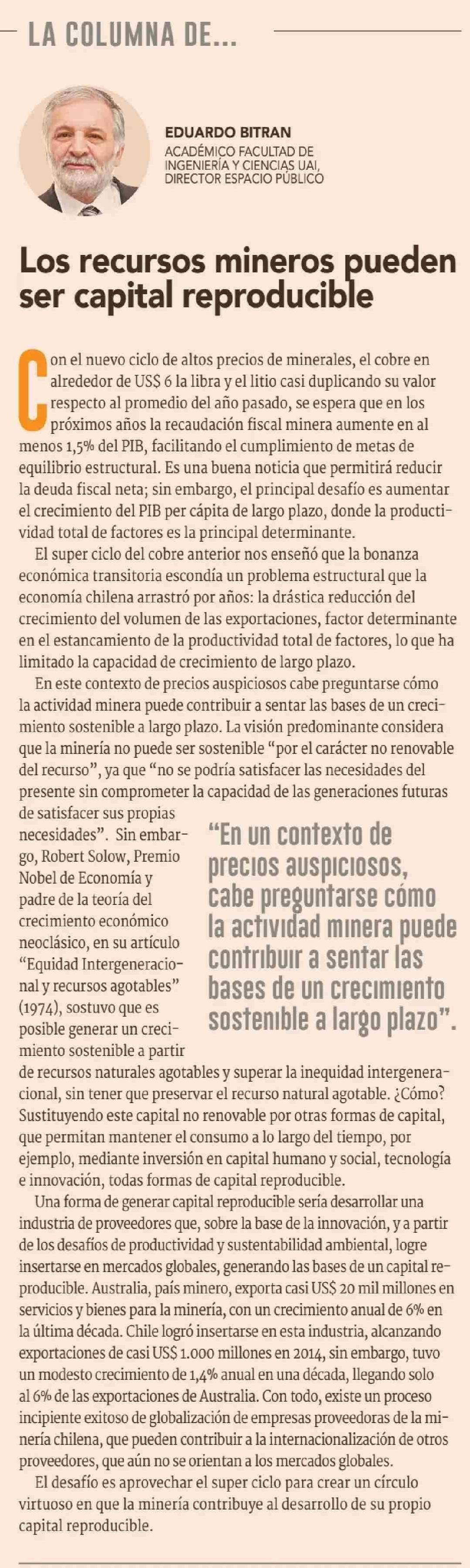 Título: Columnas de Opinión: Los recursos mineros pueden ser capital reproducible