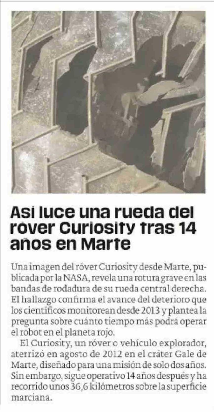 Título: Asi luce una rueda del rover Curiosity tras 14 años en Marte