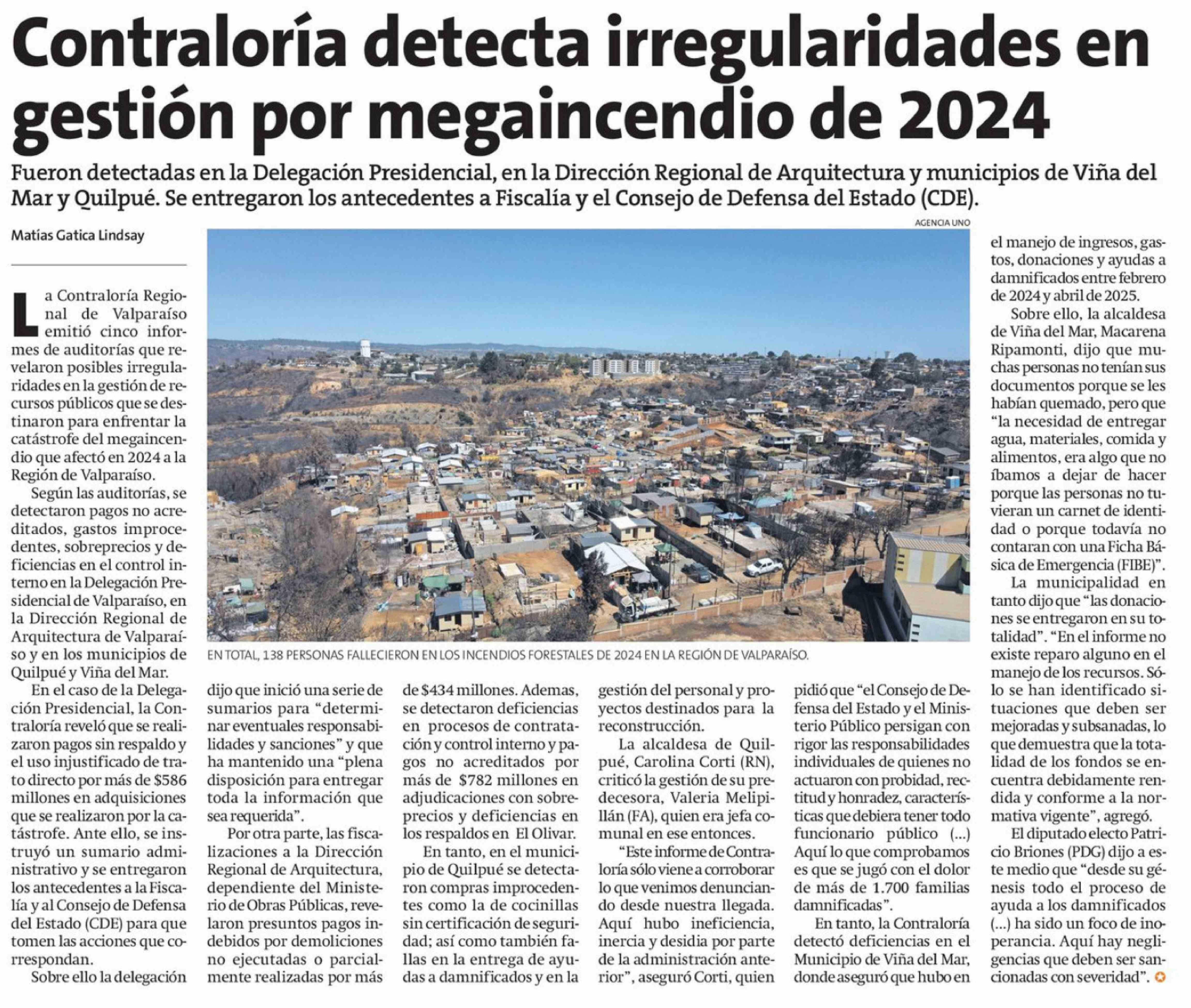| Título: | Contraloría detecta irregularidades en gestión por megaincendio de 2024 |
