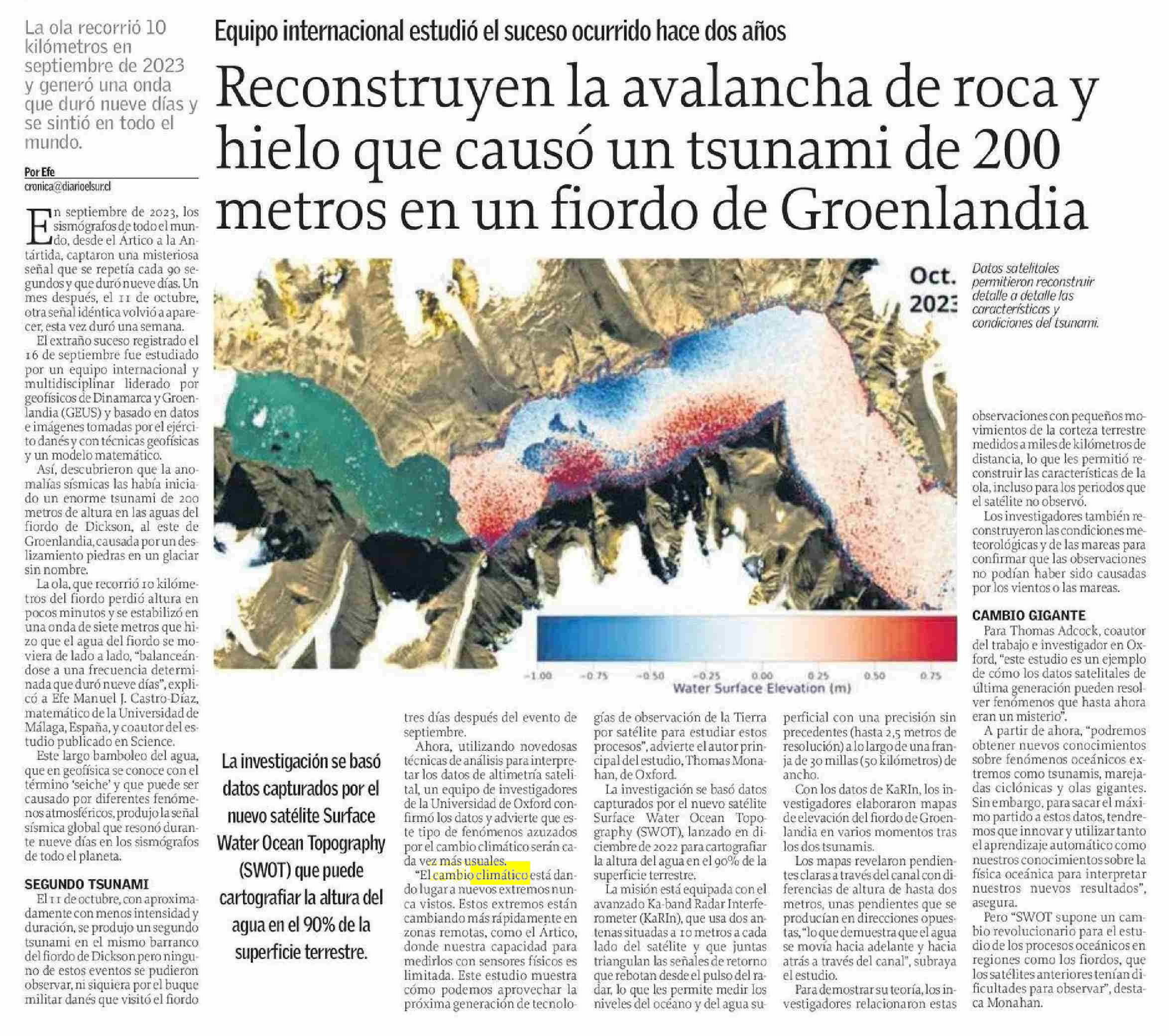 Reconstruyen la avalancha de roca y hielo que causó un tsunami de 200 metros en un fiordo de Groenlandia 04-06-2025 El Sur |