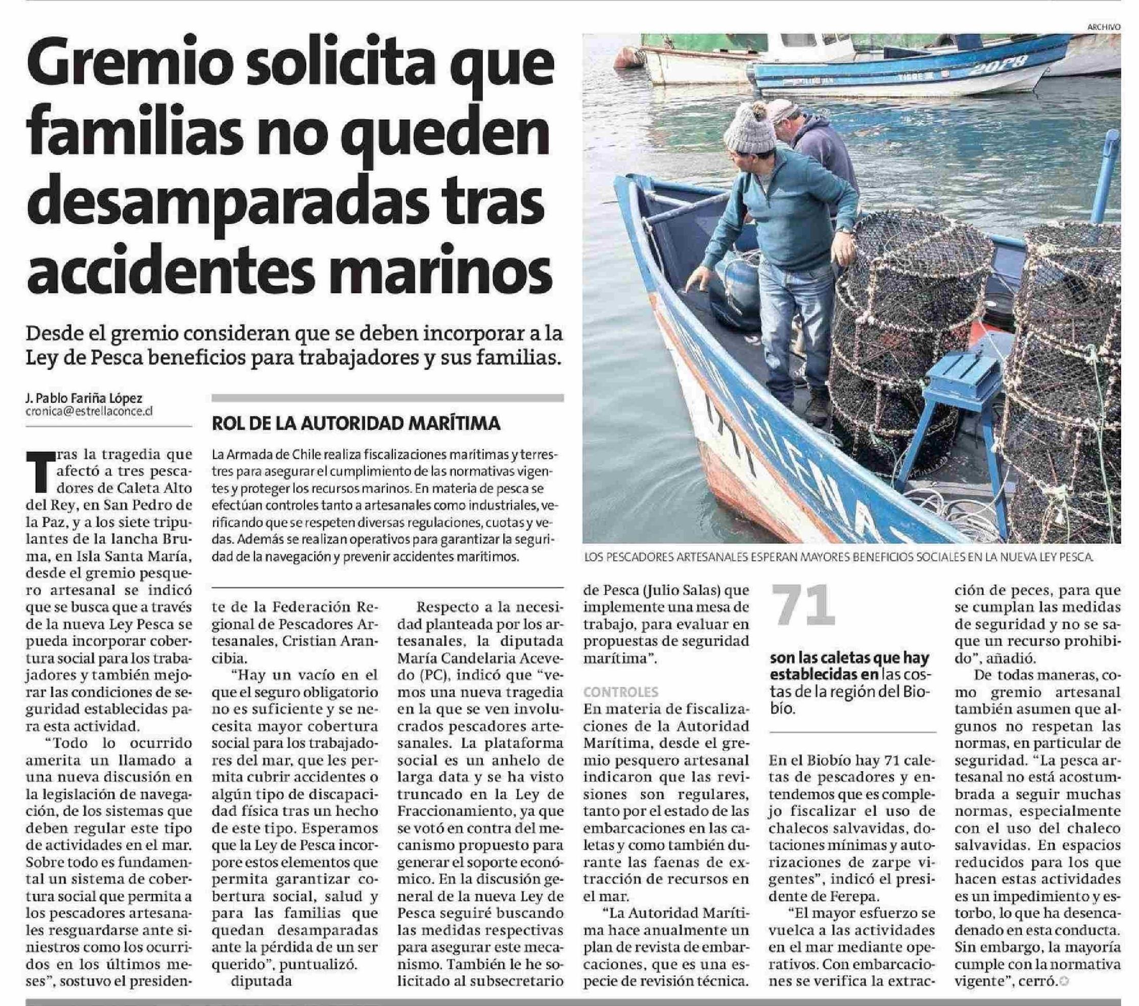 Título: Gremio solicita que familias no queden desamparadas tras accidentes marinos