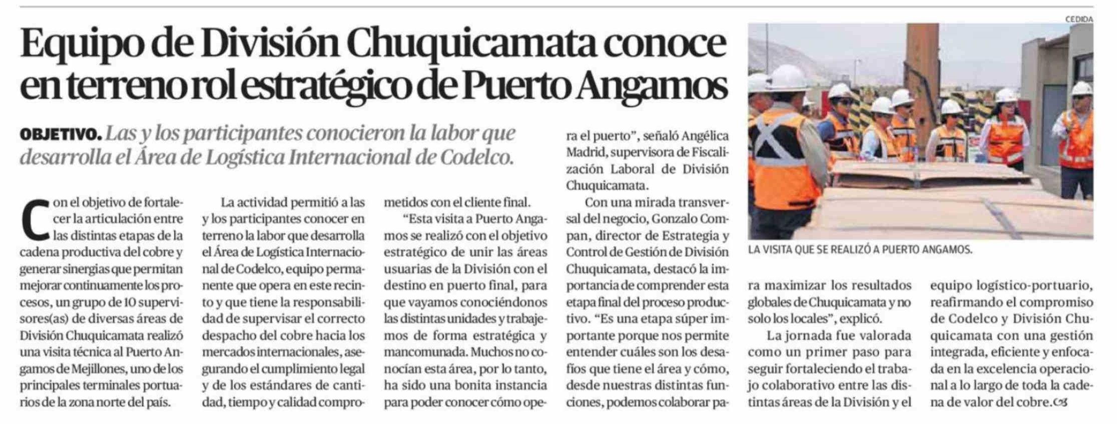 Título: Equipo de División Chuquicamata conoce en terreno rol estratégico de Puerto Angamos
