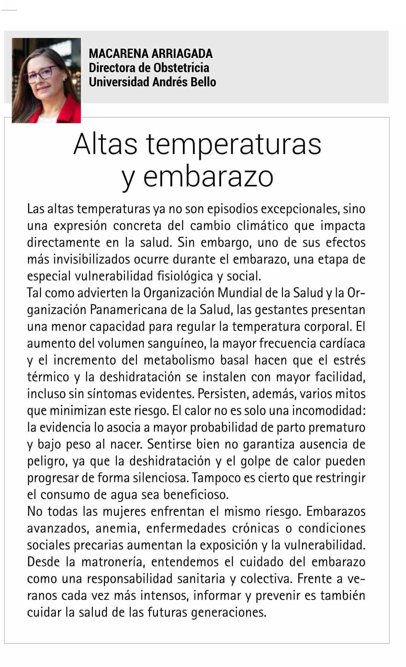 Título: COLUMNAS DE OPINIÓN: Altas temperaturas y embarazo