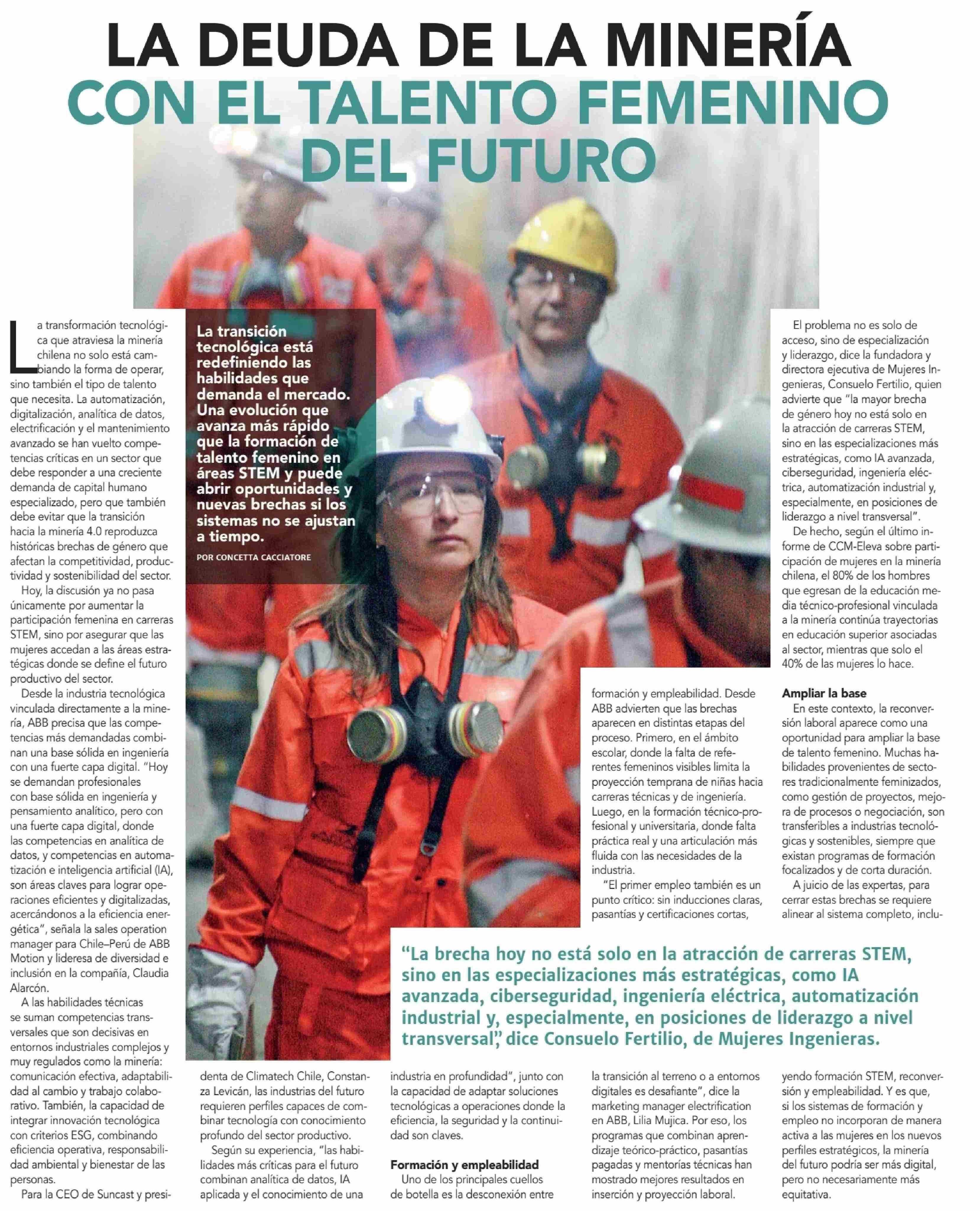 LA DEUDA DE LA MINERÍA CON EL TALENTO FEMENINO "DEL FUTURO 08-03-2026 Diario Financiero |