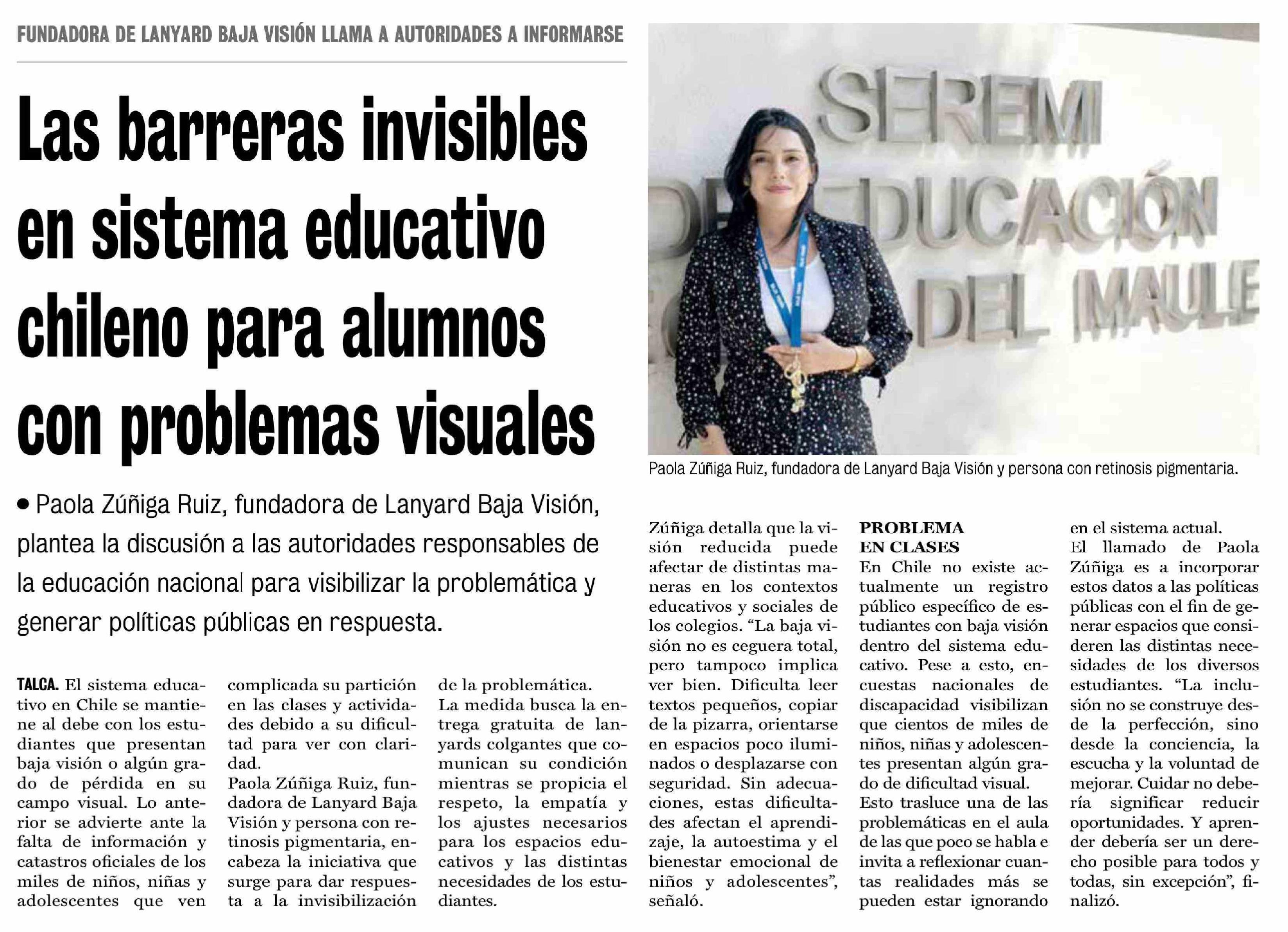 Las barreras invisibles en sistema educativo chileno para alumnos con problemas visuales 15-02-2026 La Prensa de Curicó |