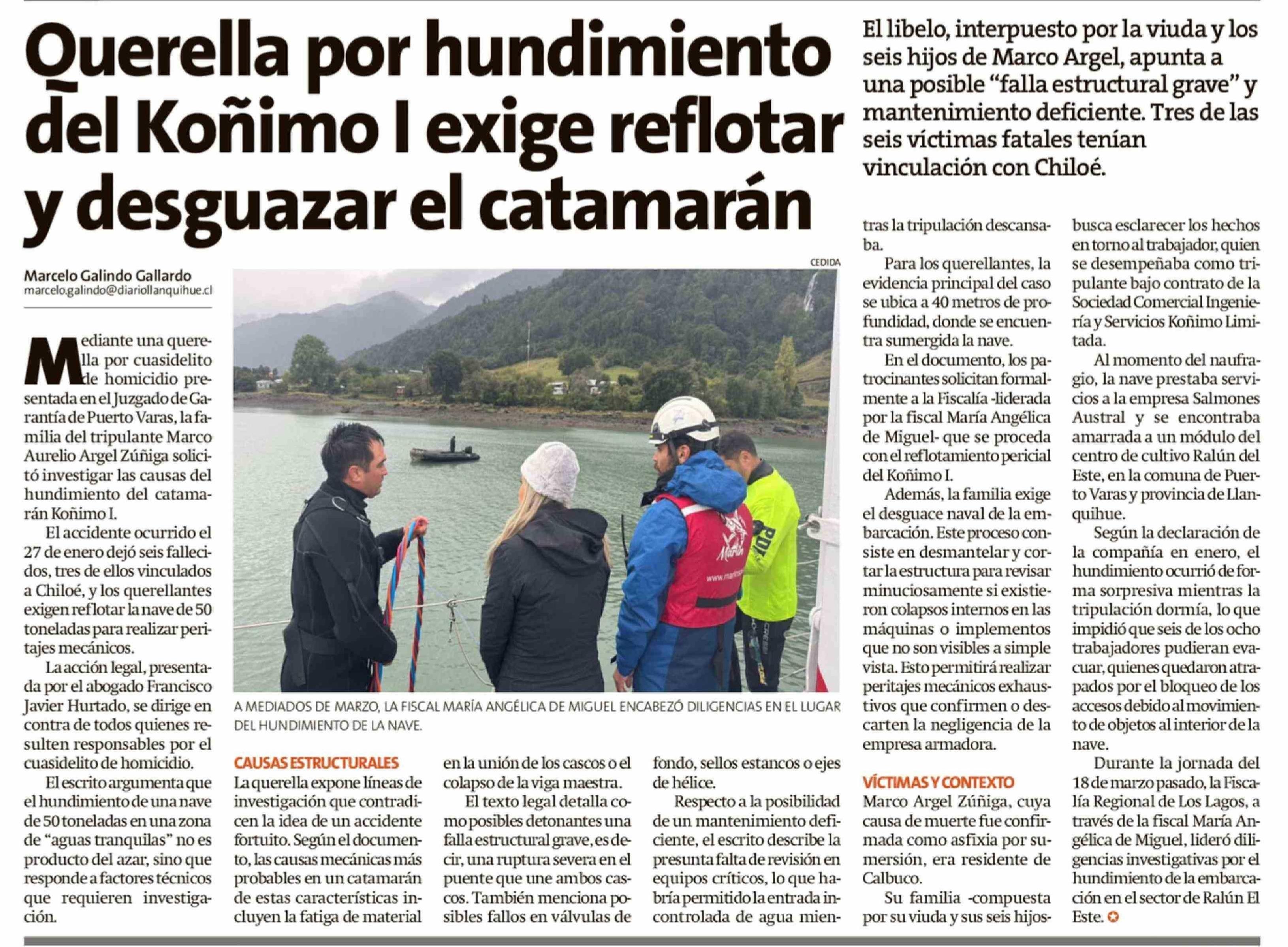 Título: Querella por hundimiento del Koñimo I exige reflotar y desguazar el catamarán