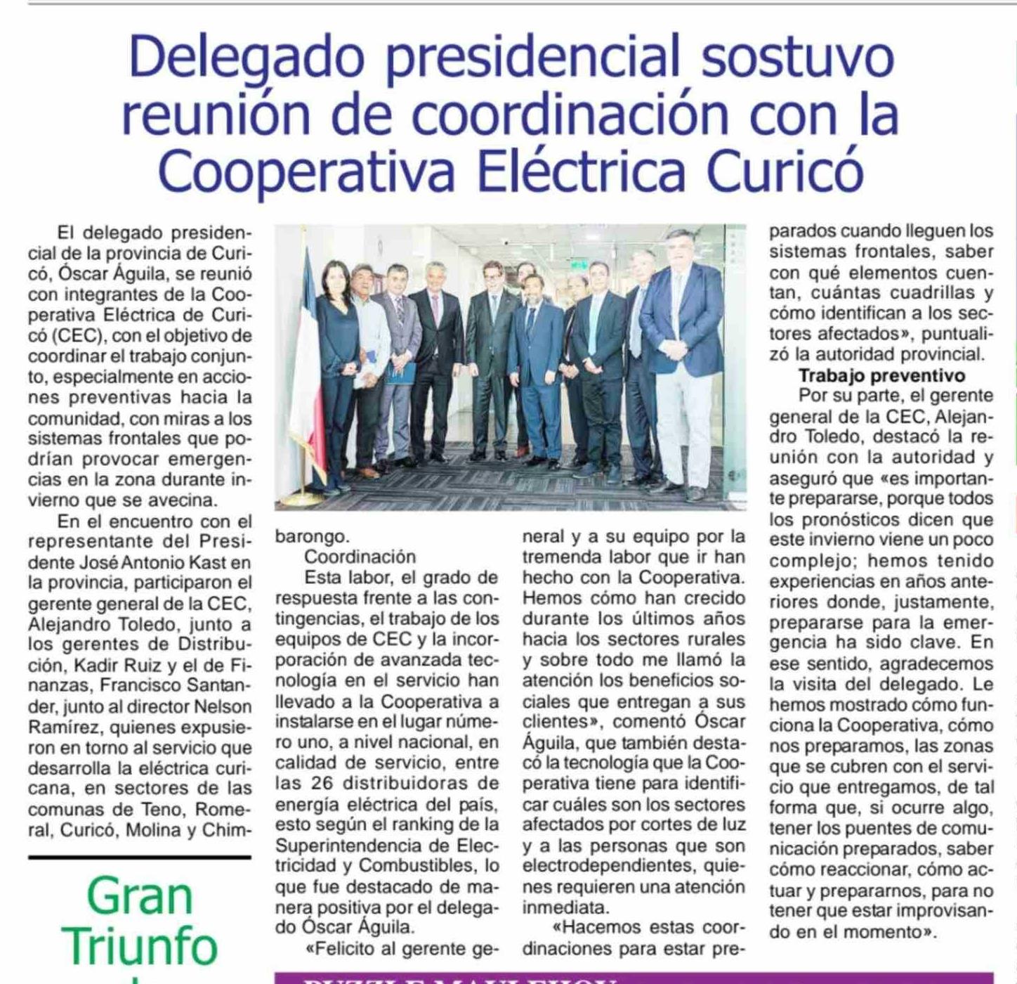 Delegado presidencial sostuvo reunión de coordinación con la Cooperativa Eléctrica Curicó 17-04-2026 Maule Hoy |