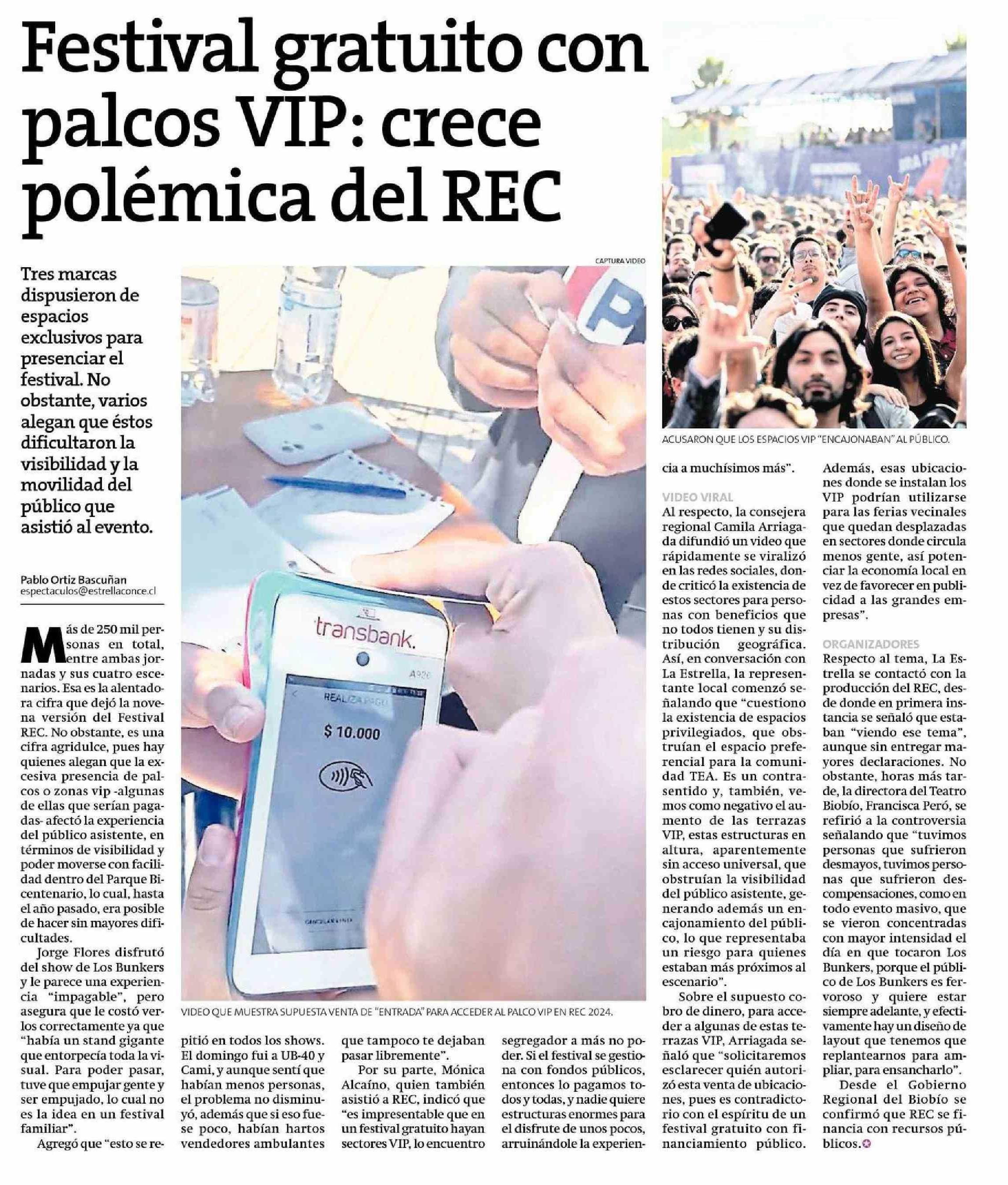 Festival gratuito con palcos VIP: crece polémica del REC 26-03-2024 La Estrella de Concepción |