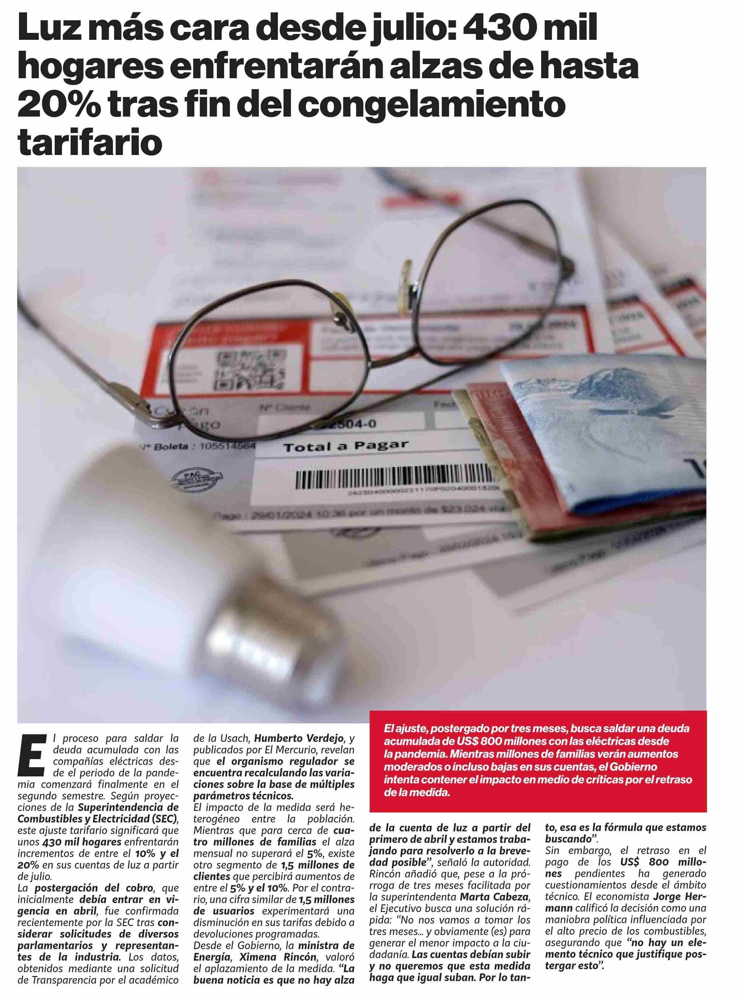Título: Luz más cara desde julio: 430 mil hogares enfrentarán alzas de hasta 20% tras fin del congelamiento tarifario