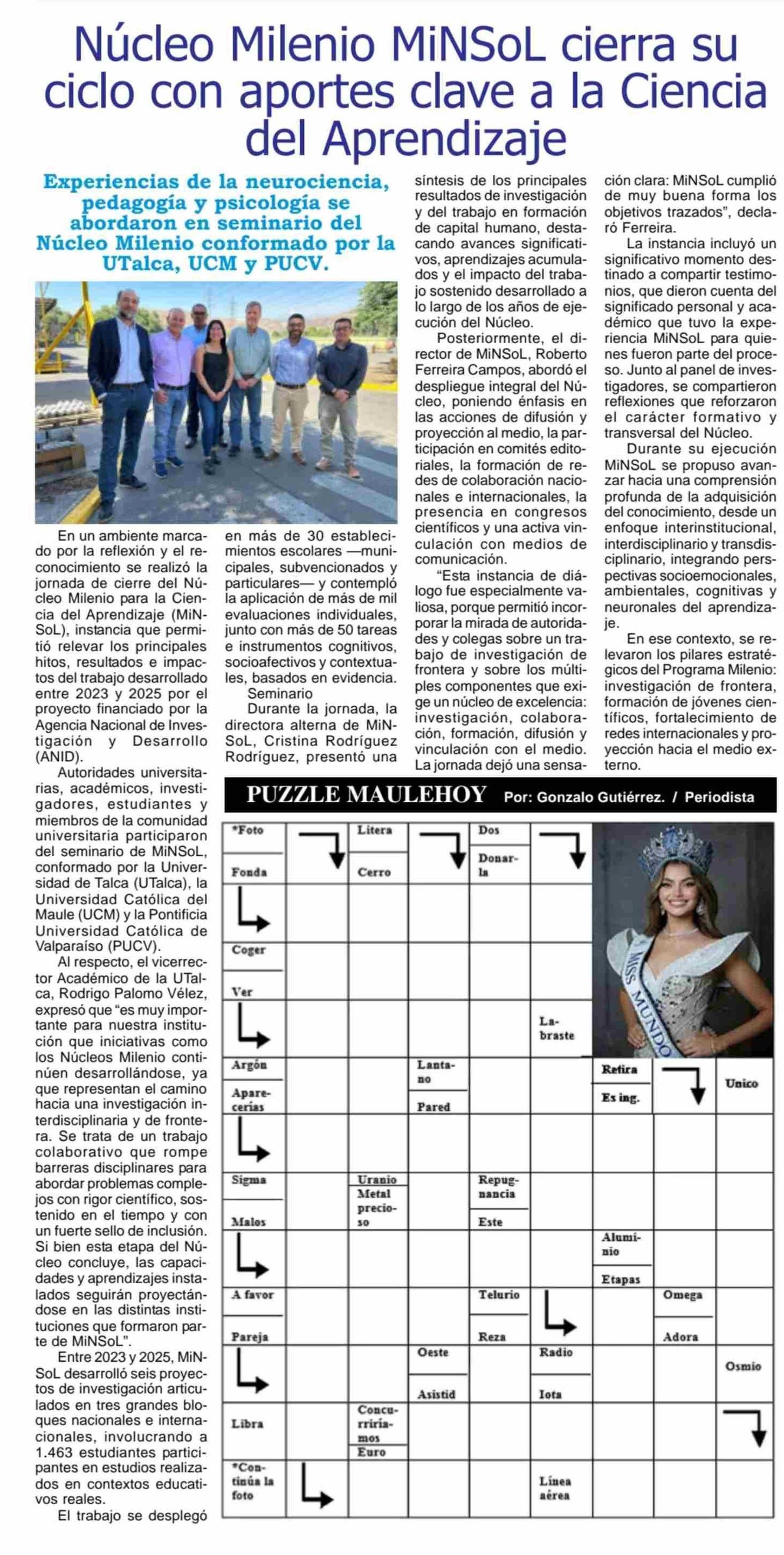 Título: Núcleo Milenio MiNSoL cierra su ciclo con aportes clave a la Ciencia del Aprendizaje